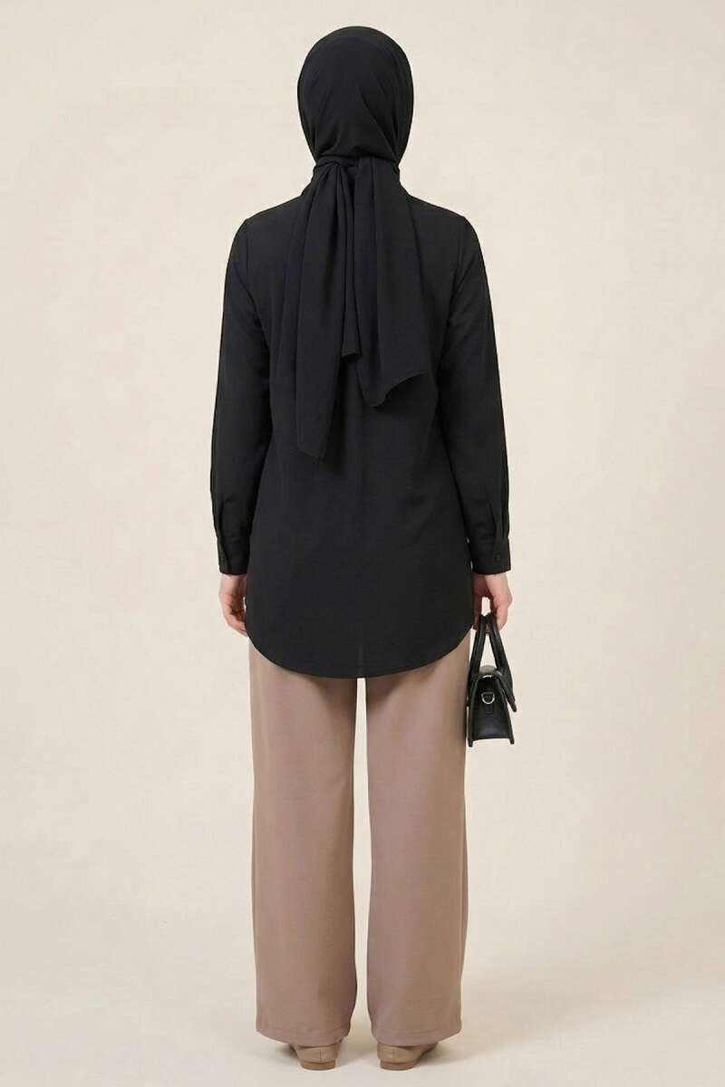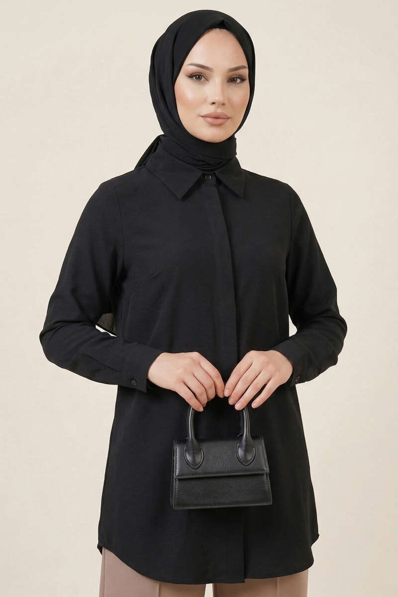 Çift Yaka İp Kuşaklı Gömlek Siyah