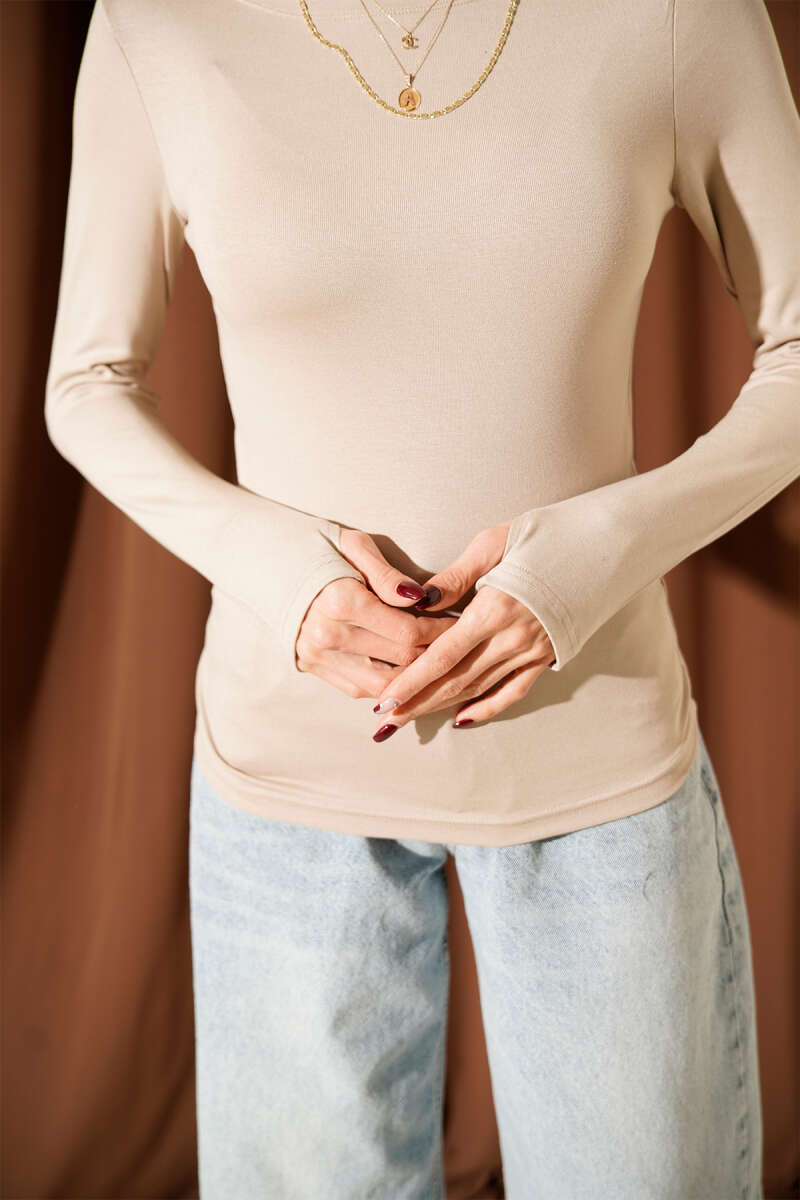 Basic Kayık Yaka Bluz Bej