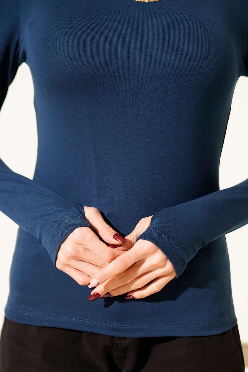 Bisiklet Yaka Sakal Detaylı Kazak Siyah