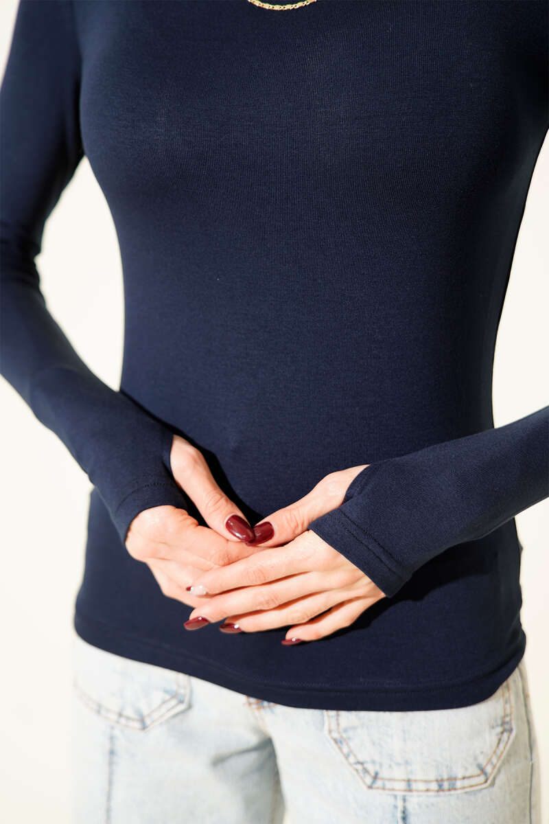 Bisiklet Yaka Sakal Detaylı Kazak Siyah