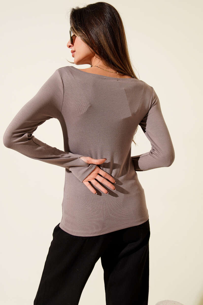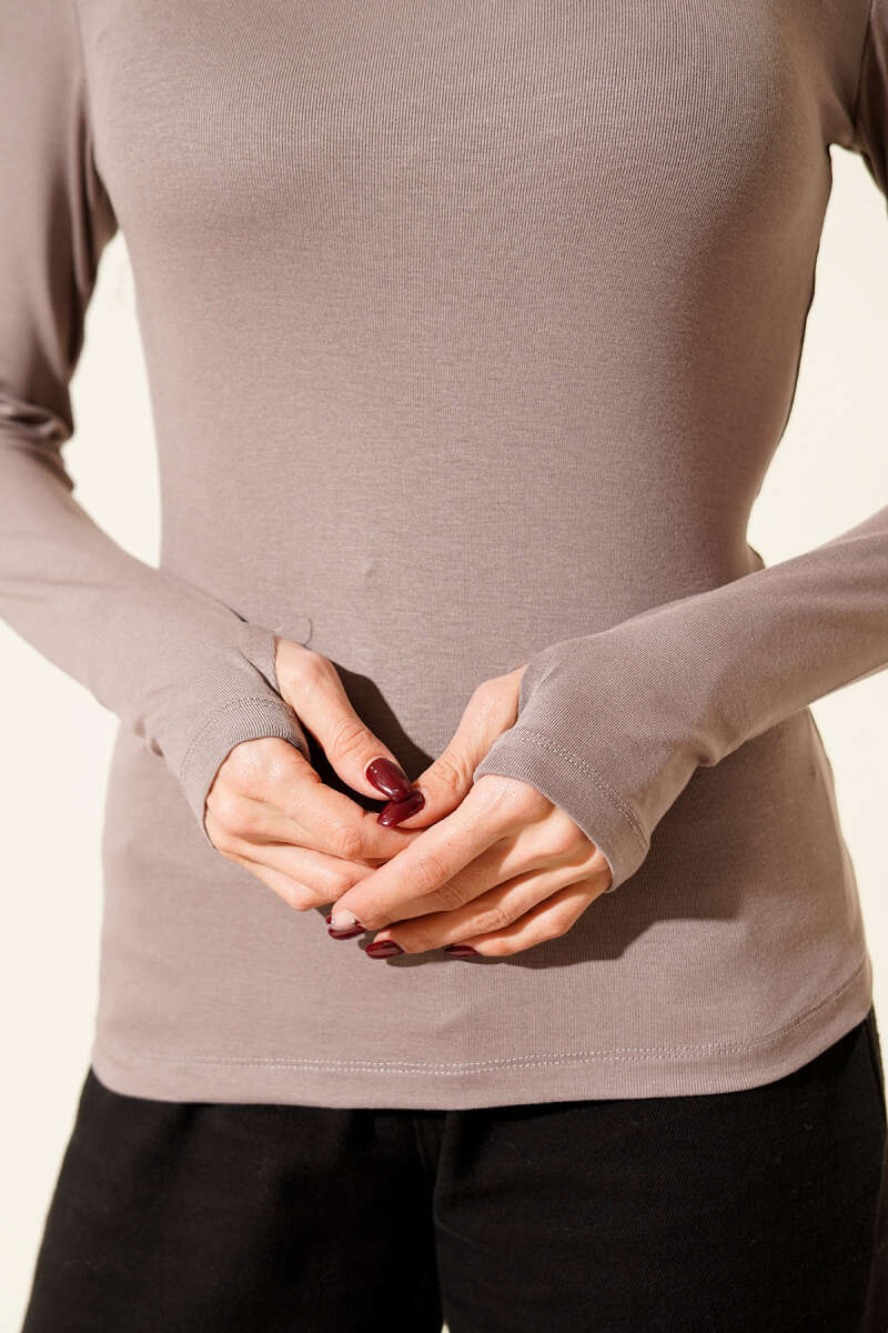 Basic Kayık Yaka Bluz Vizon