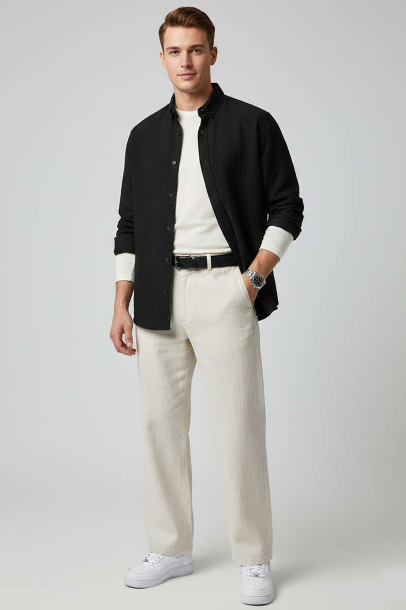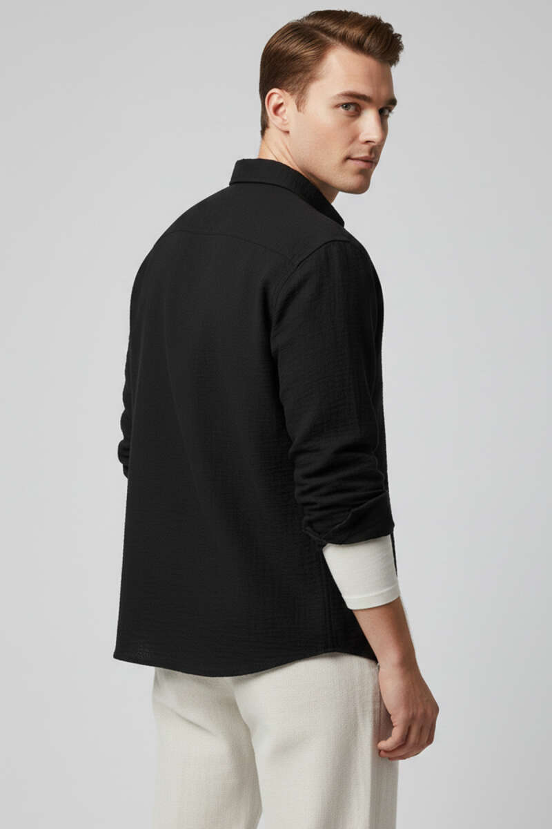 Basic Keten Erkek Gömlek Siyah