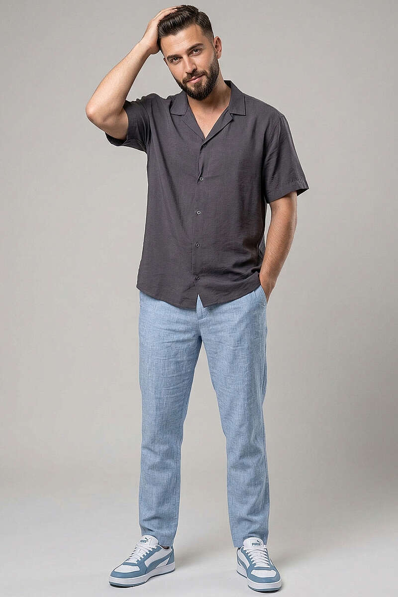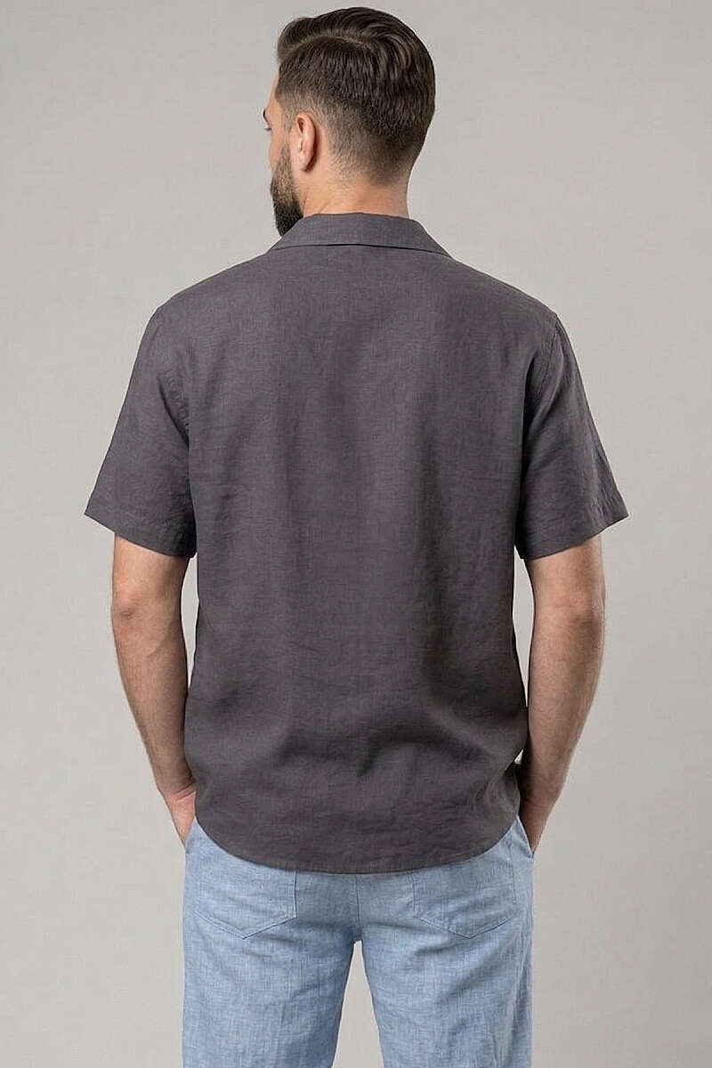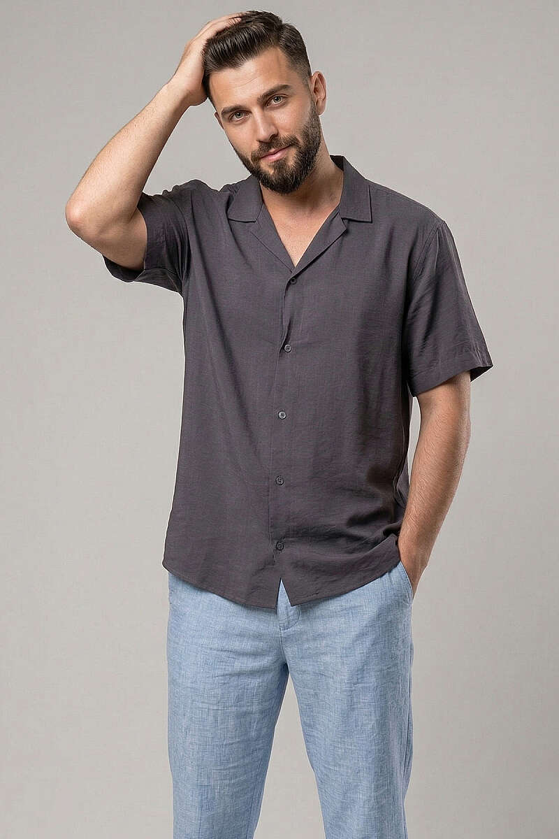 Basic Kısa Kol Tensel Erkek Gömlek Antrasit