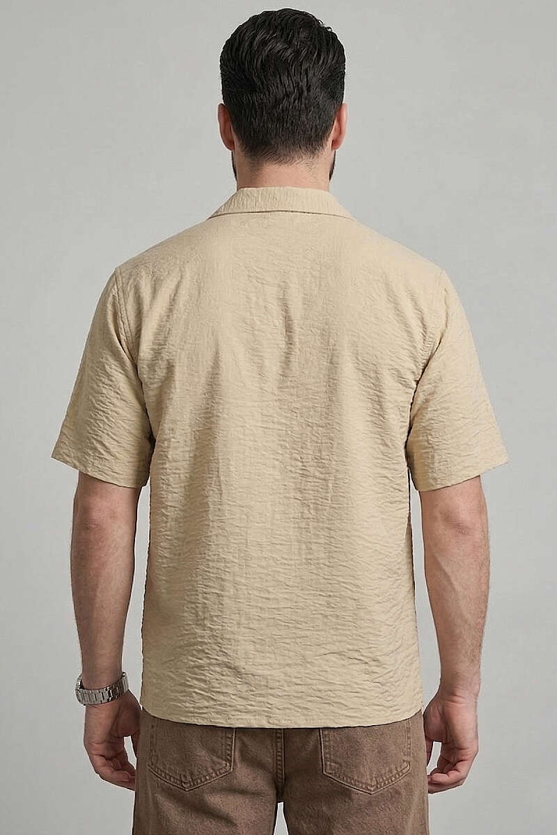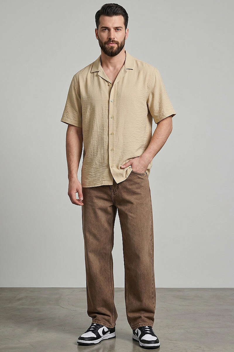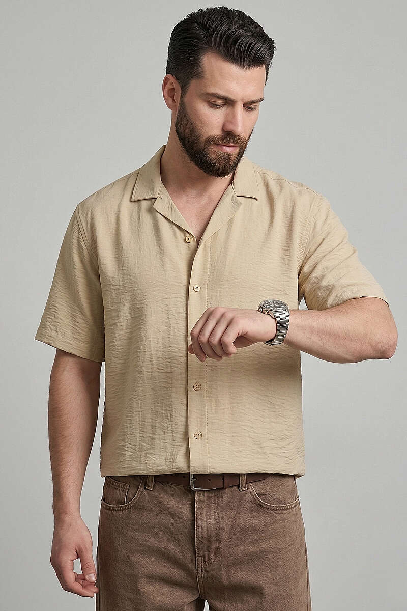 Basic Kısa Kol Tensel Erkek Gömlek Bej