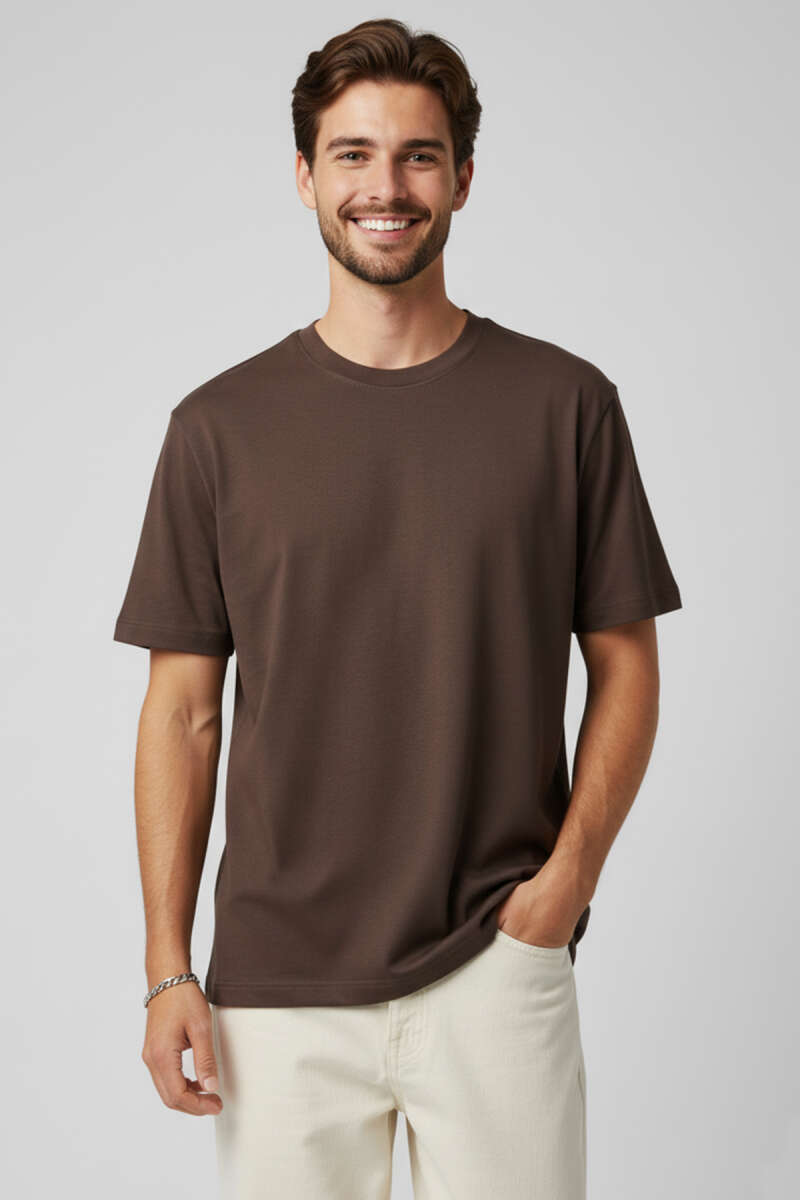 Bisiklet Yaka Fakir Kollu T-shirt Bej