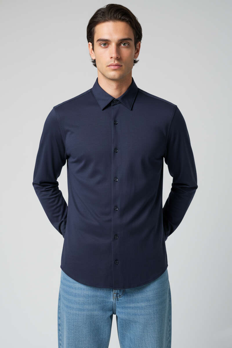 Bilek Manşet Detaylı Erkek Gömlek Lacivert