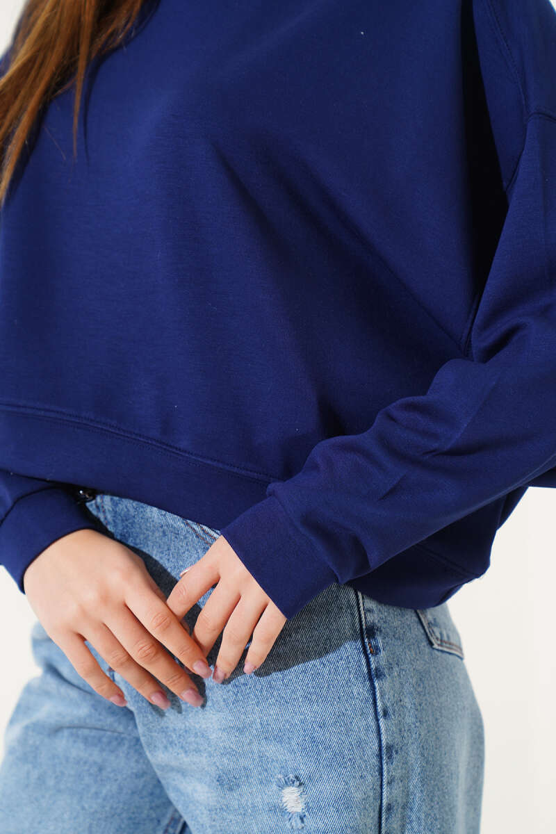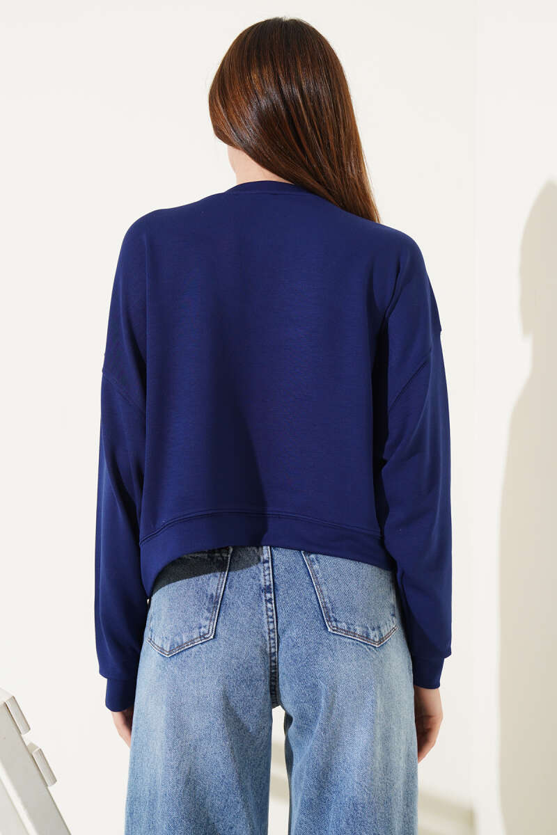 Çiçek Detaylı Yumoş Triko Tunik Lacivert
