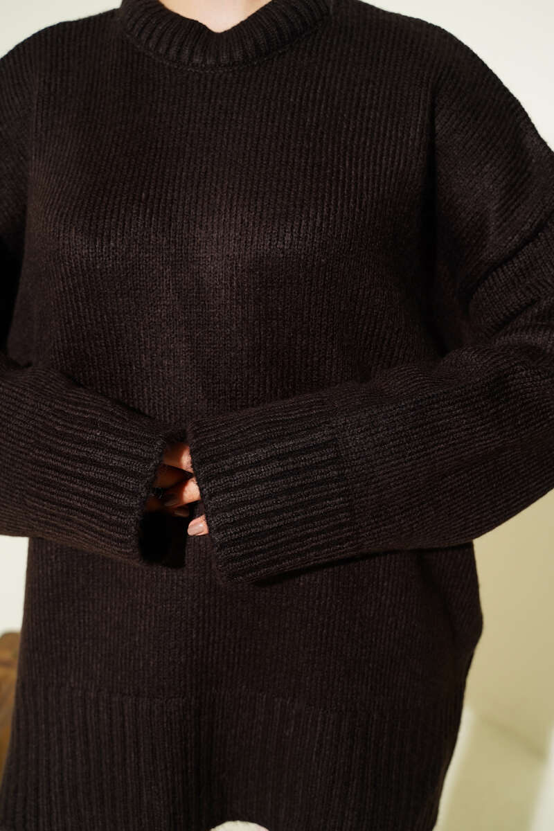 Düğmeli Cepli Uzun Triko Hırka Latte