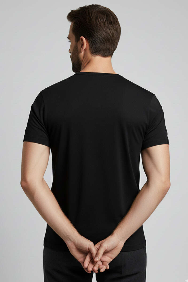 Fitilli Açık Polo Yaka Erkek Triko T-shirt Siyah