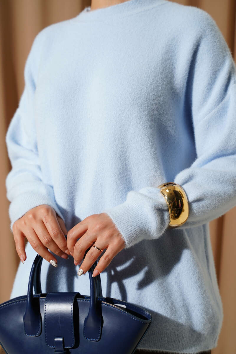 Basic Sakallı Yumoş Triko Tunik Mavi