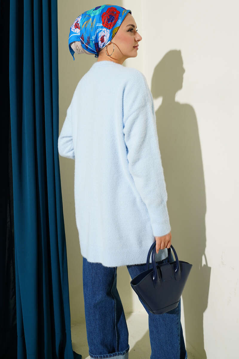 Düğmeli Uzun Merserize Hırka Kahve