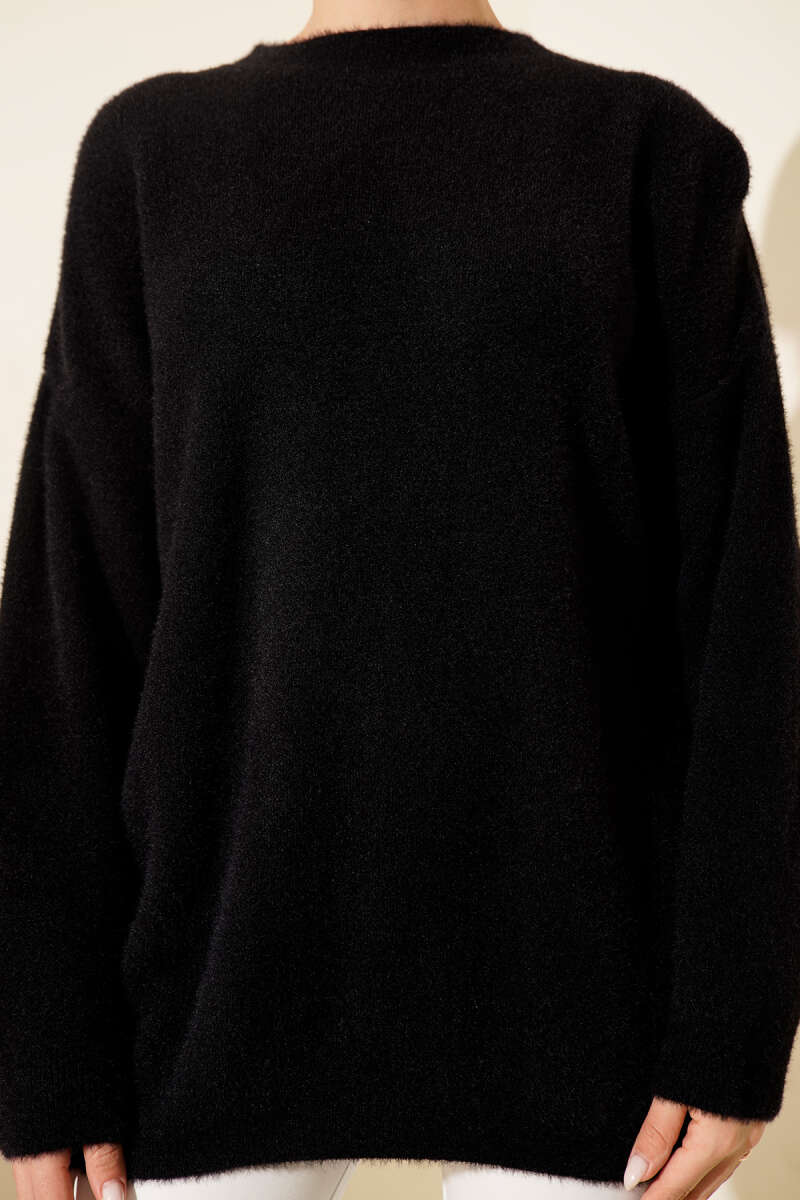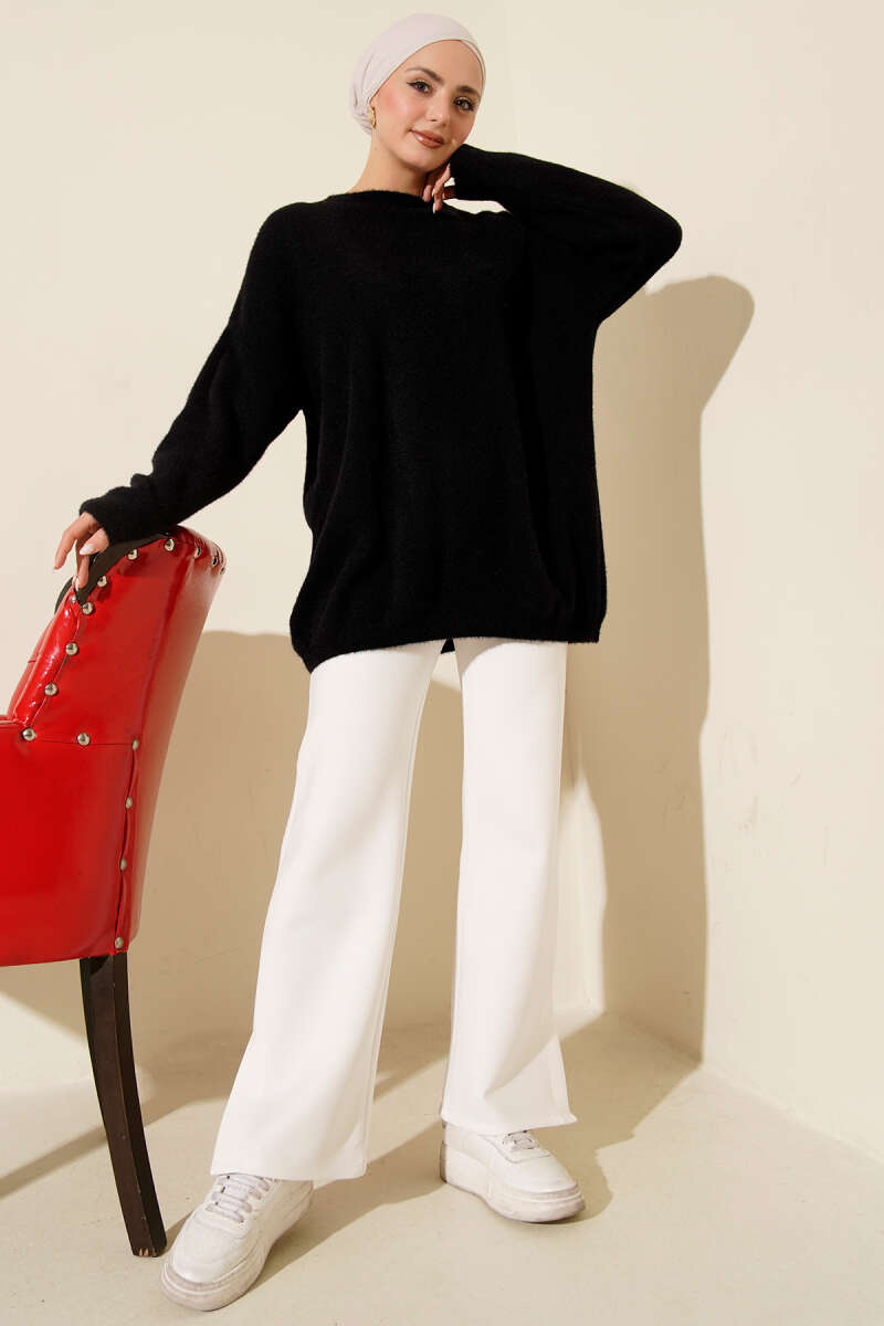 Basic Oversize Triko Tunik Yağ Yeşili