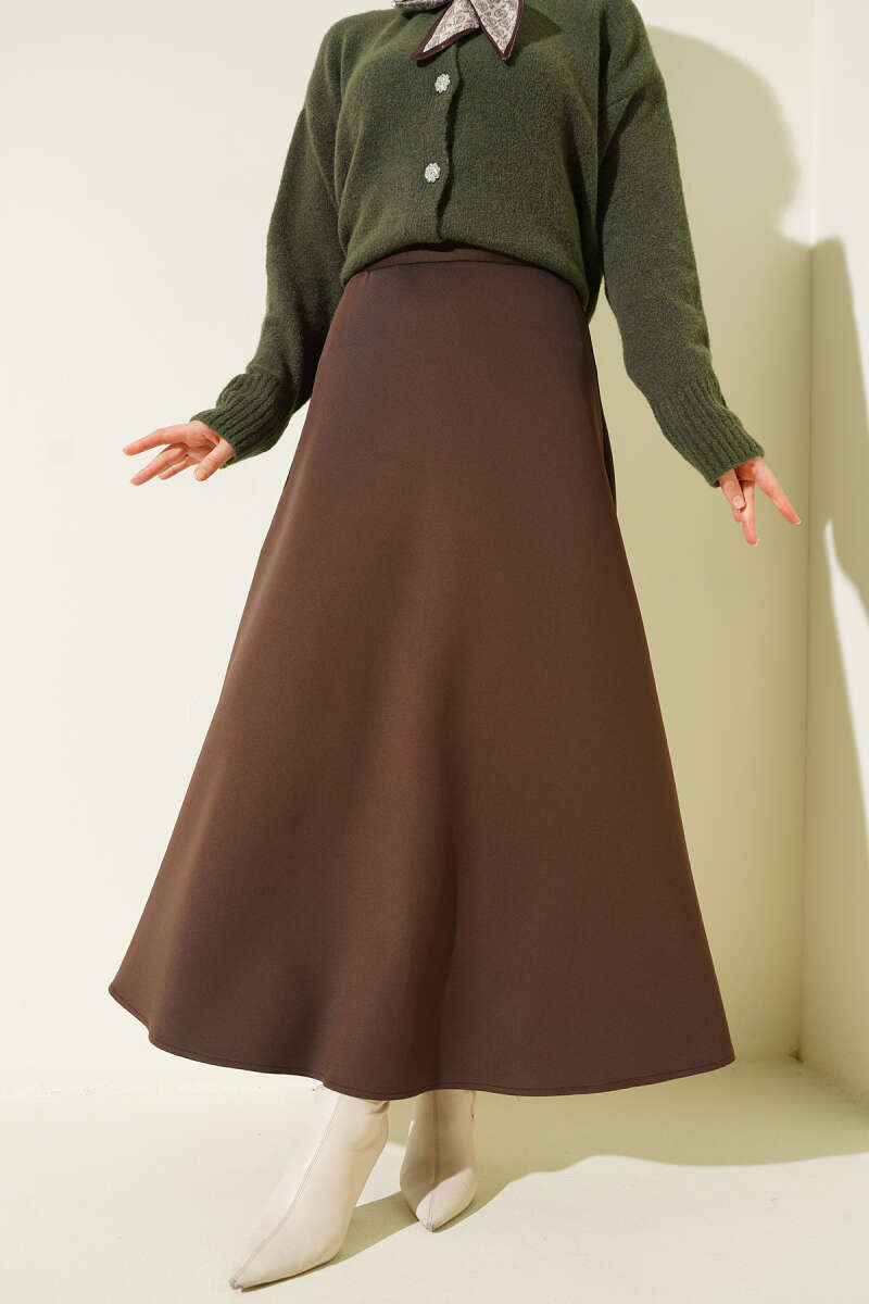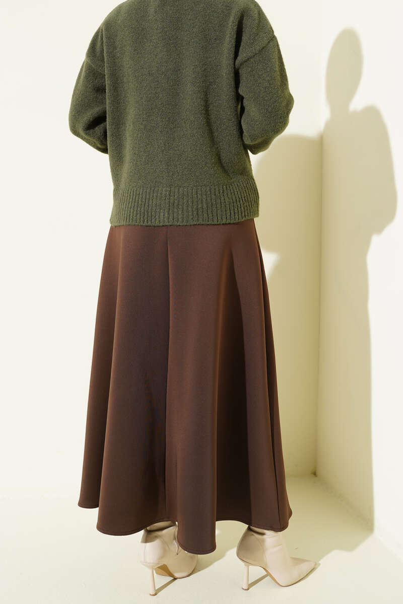Beli Lastikli Saten Kloş Etek Kırmızı