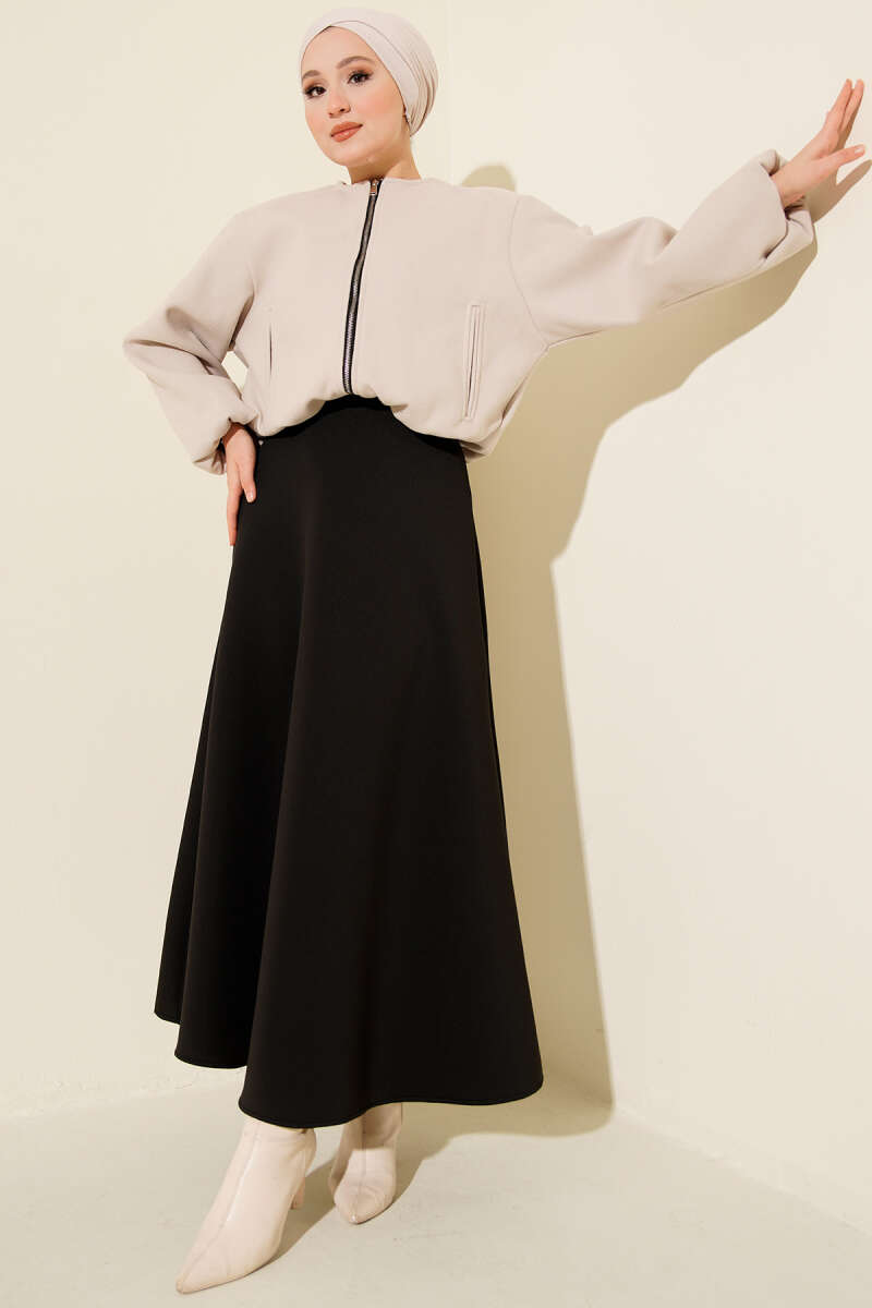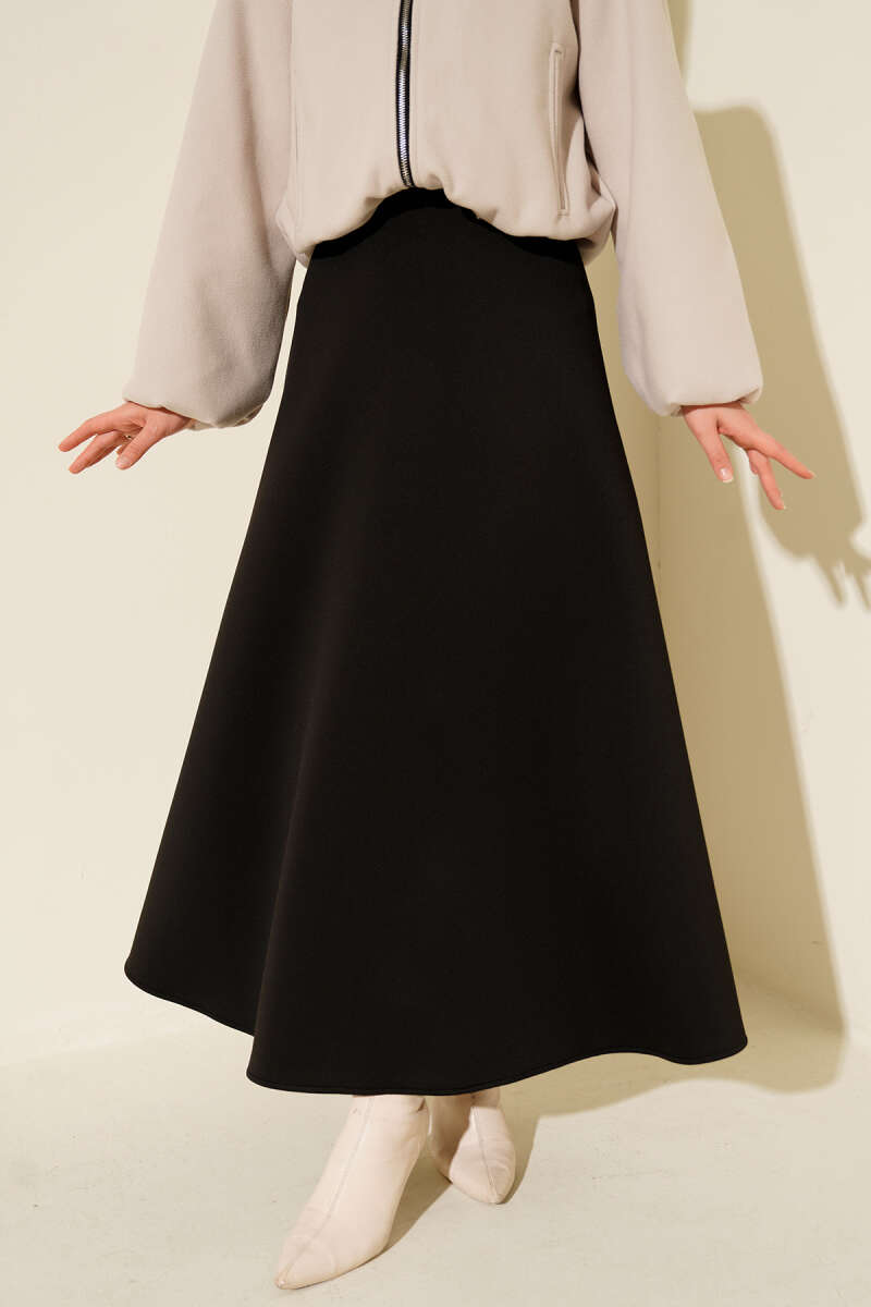 Kendinden Desenli Scuba Etek Siyah