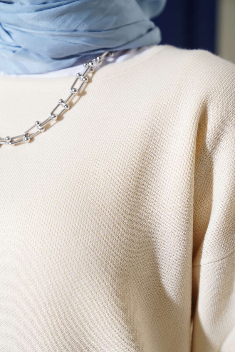 Gömlek Yaka Çizgili Triko Tunik Ekru