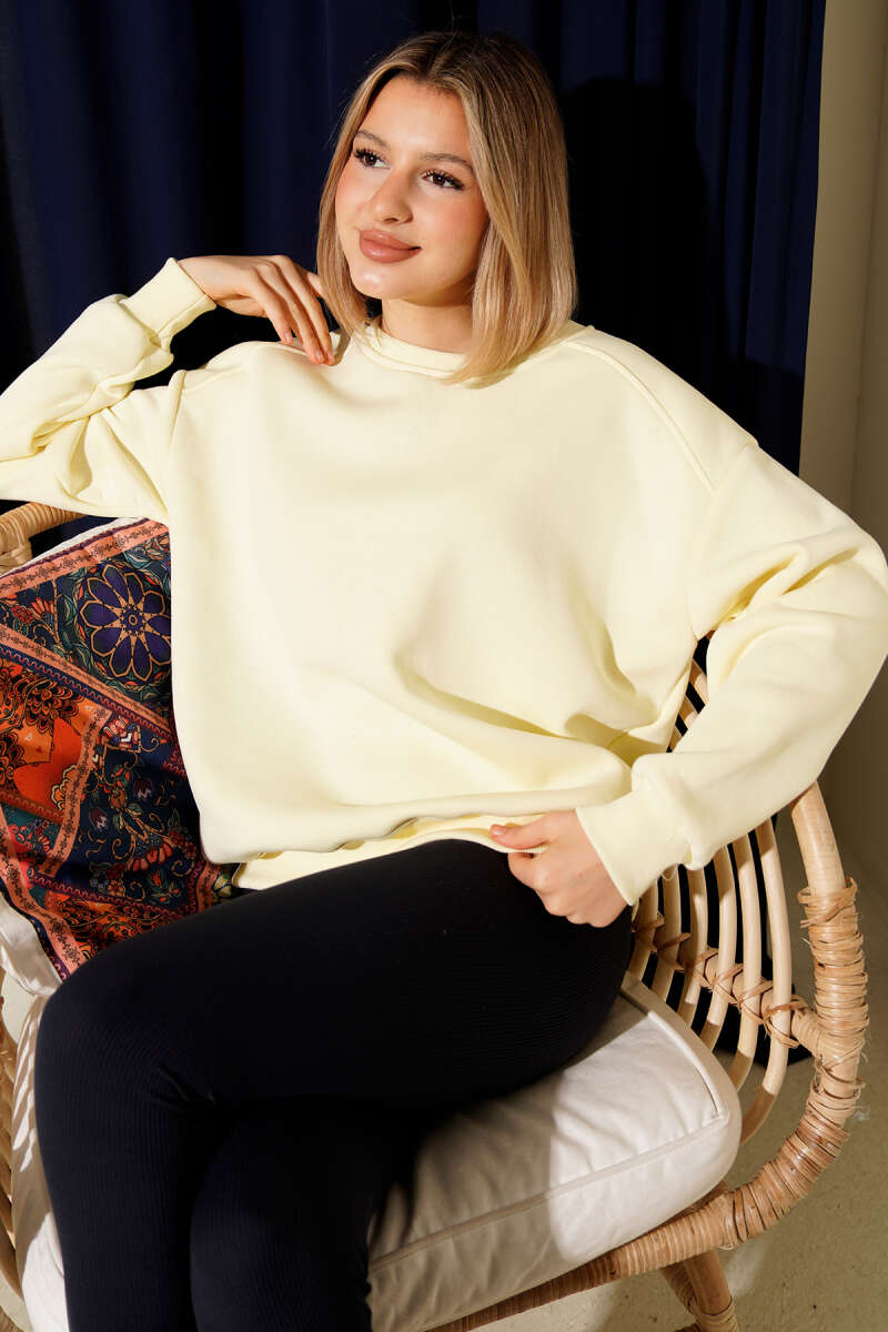 Basic Üç İplik Kısa Sweatshirt Ekru