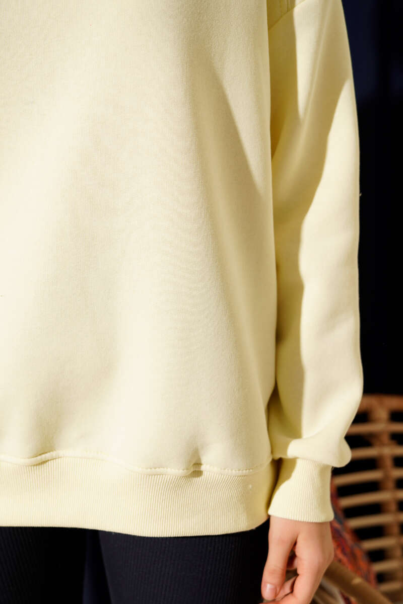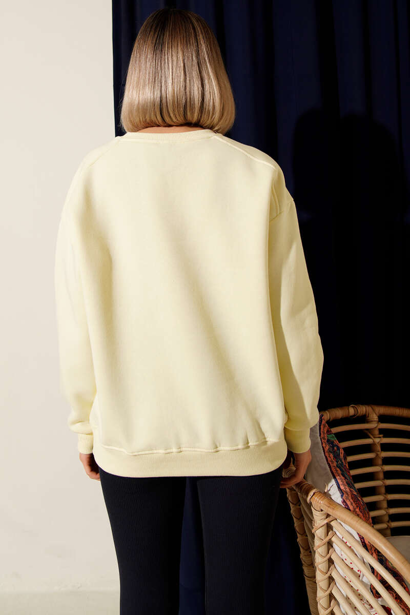 Kol Şeritli Fiyonklu Üç İplik Sweatshirt Ekru