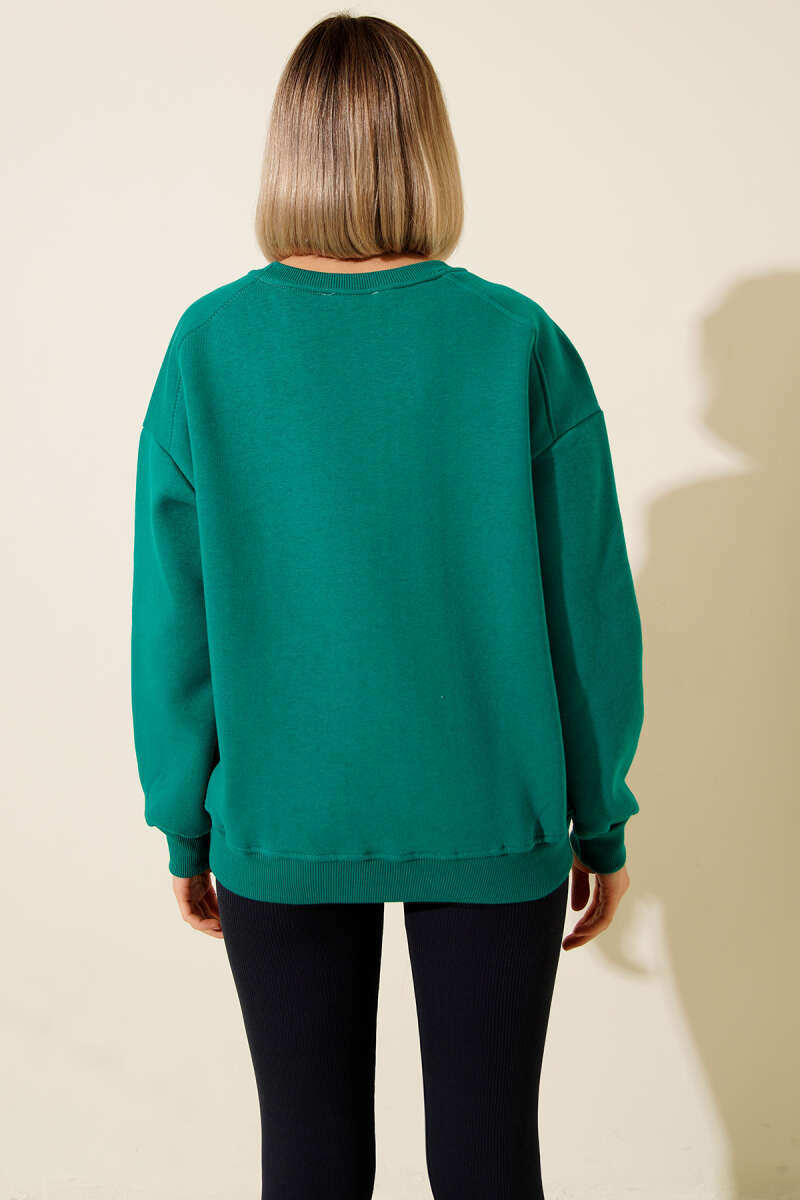 Kol Şeritli Fiyonklu Üç İplik Sweatshirt Ekru