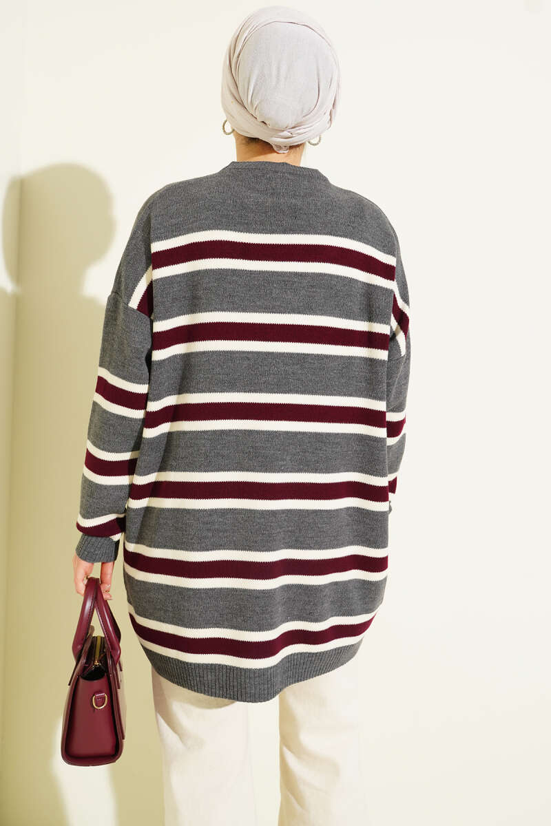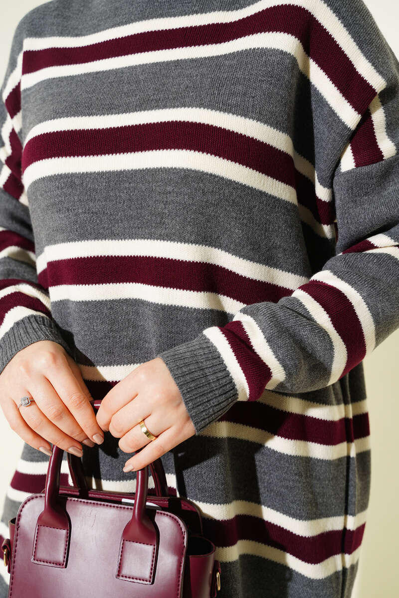 İp Bağlamalı Duble Kol Triko Tunik Bordo
