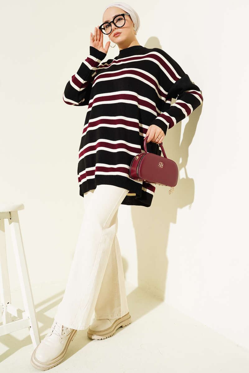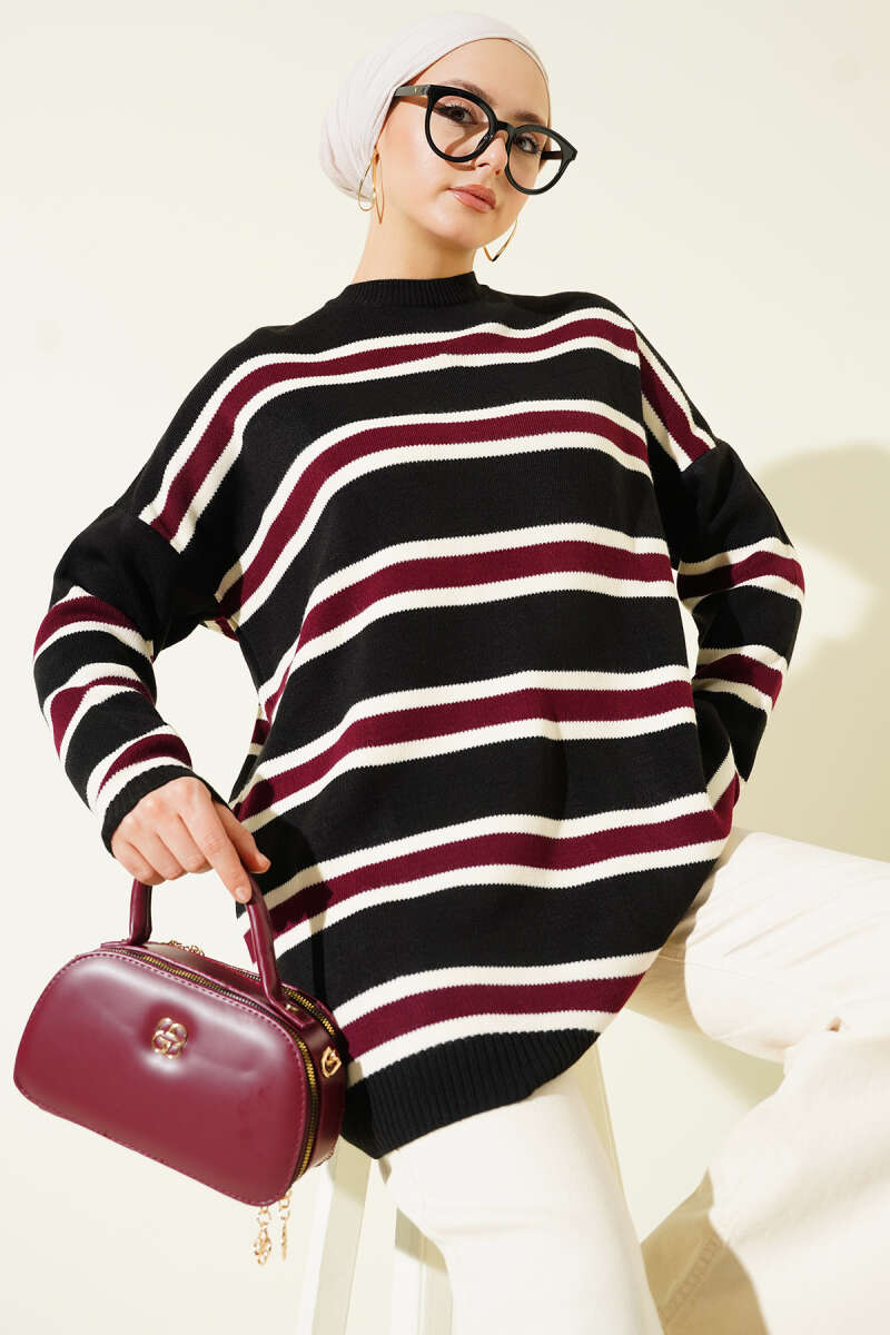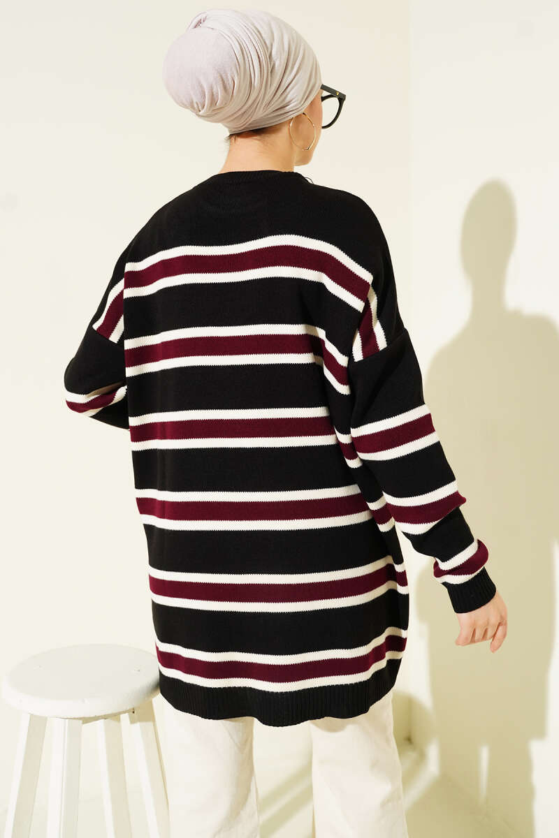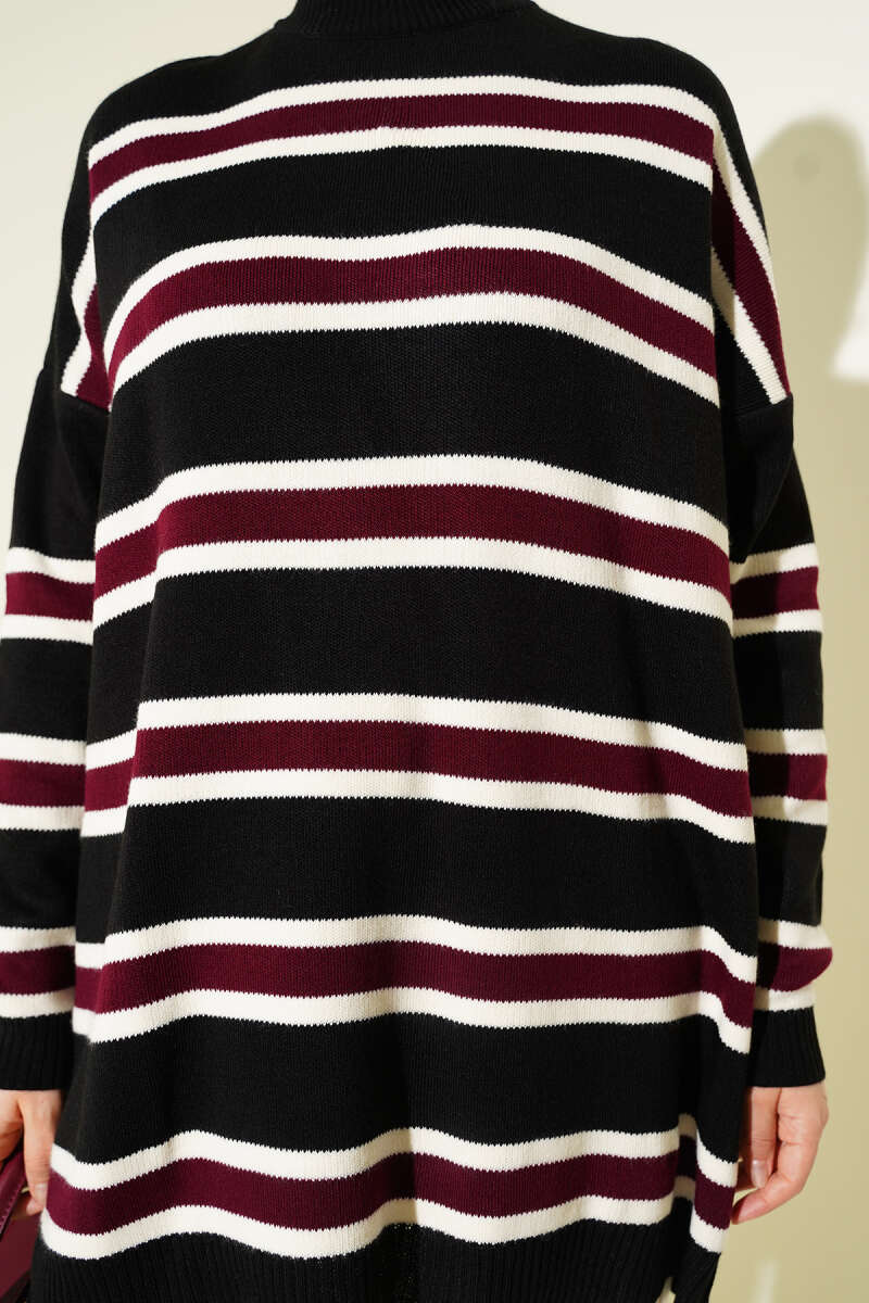 Basic Yatay Çizgi Detaylı Triko Tunik Siyah
