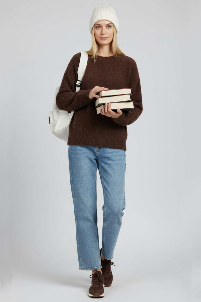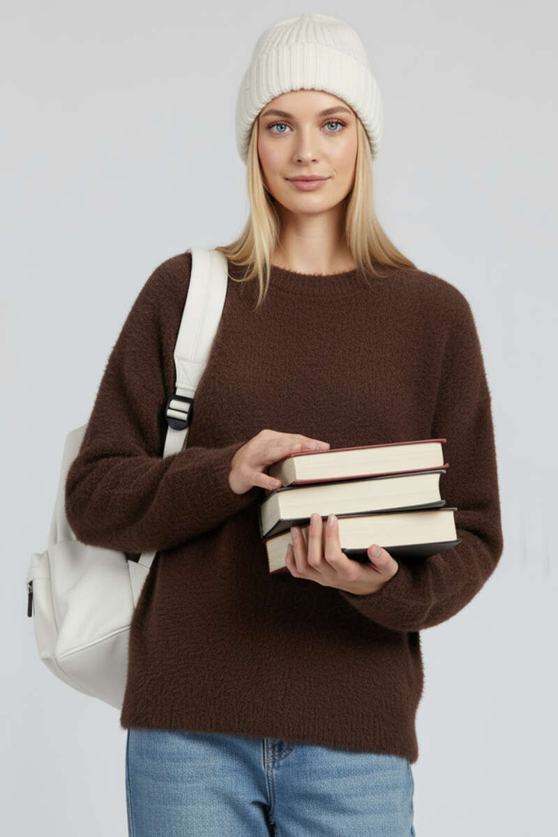 Geniş Kollu Sakallı Kısa Triko Kazak Lila