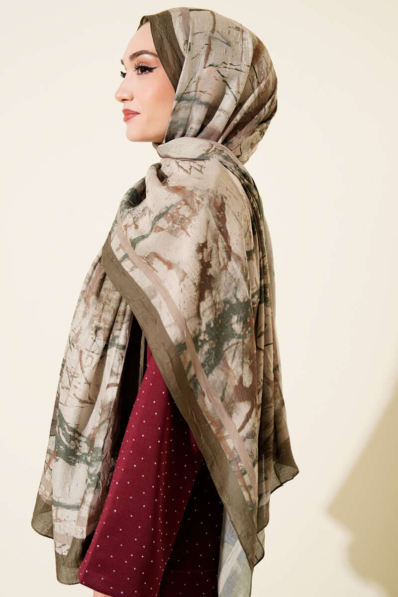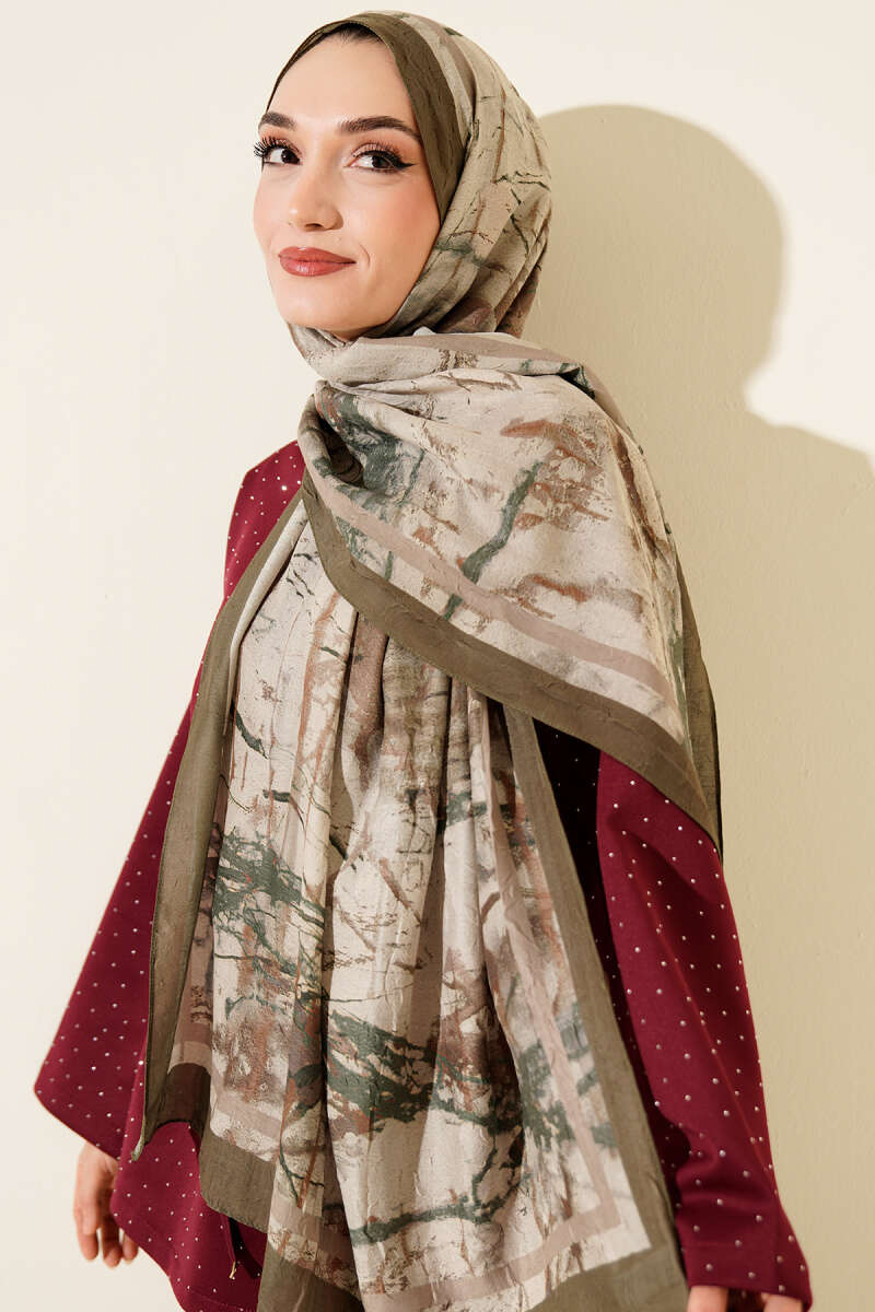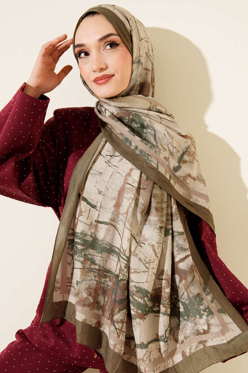 Çizgi Gül Desen Soft Şal Su Yeşili