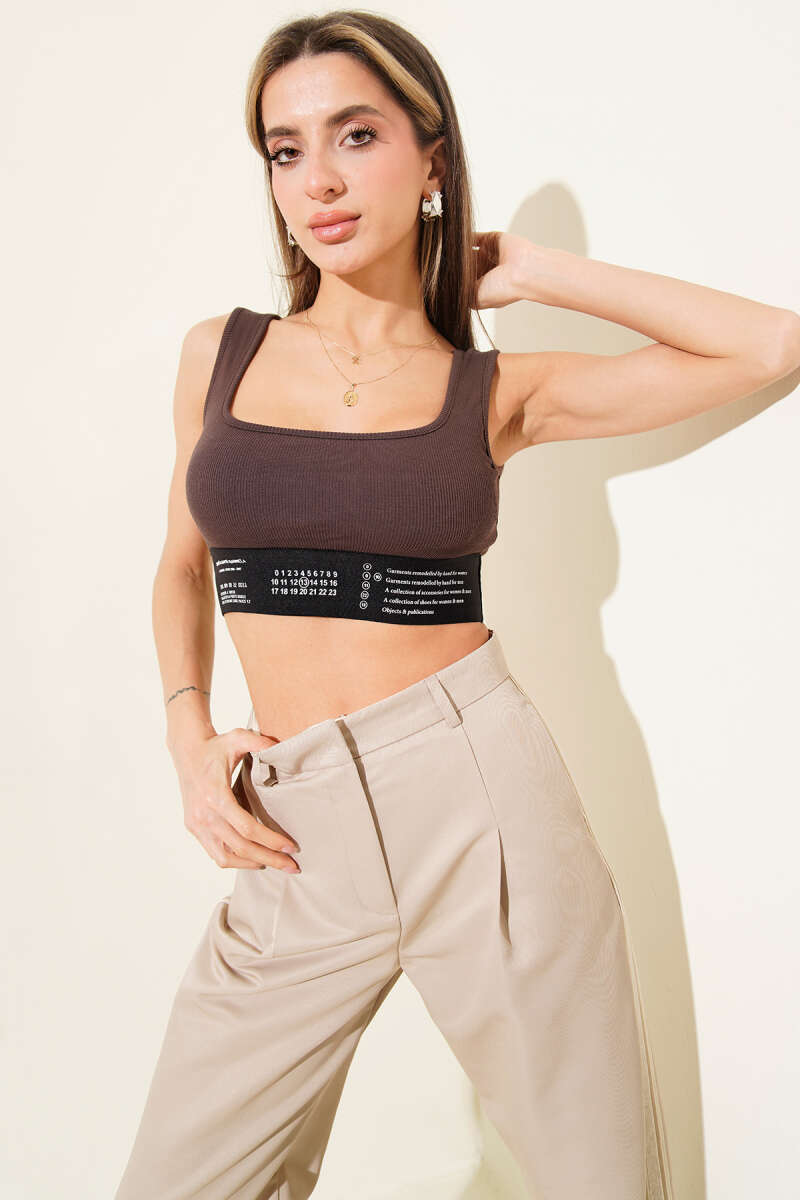 Baskı Detaylı Fitilli Büstiyer Kahve