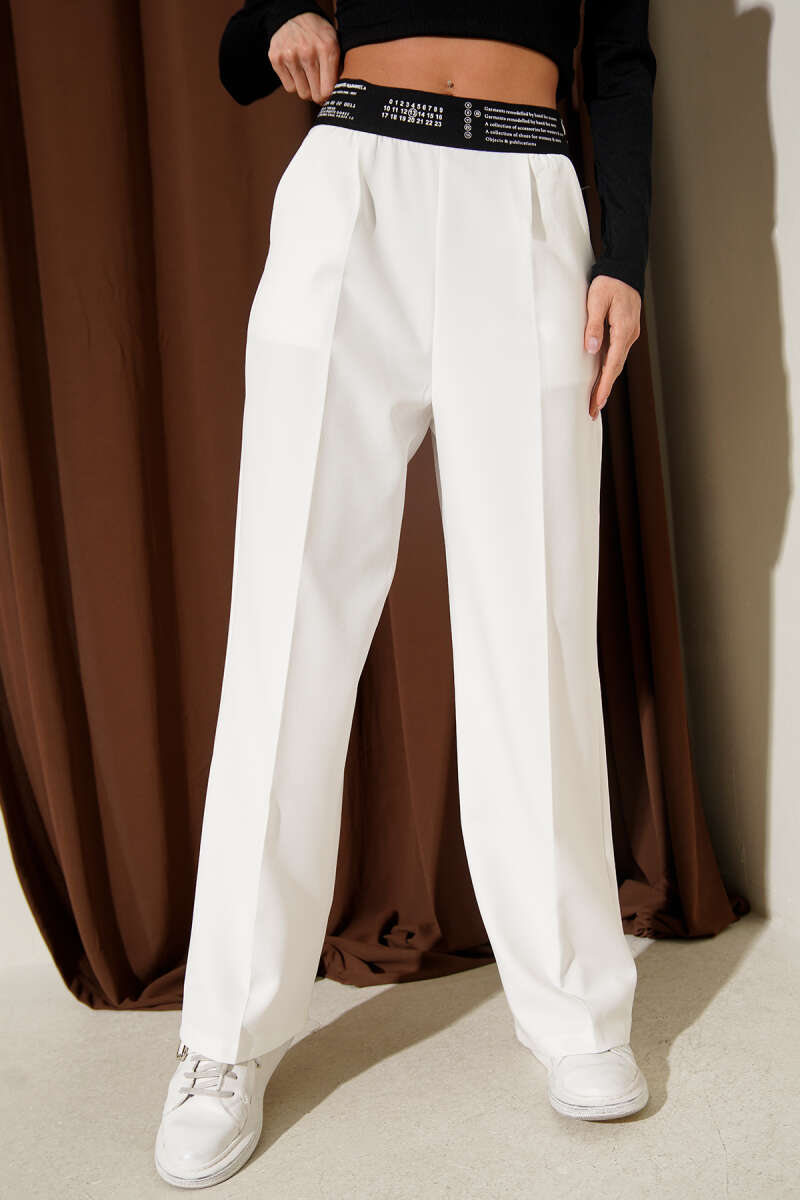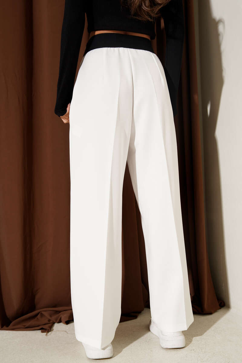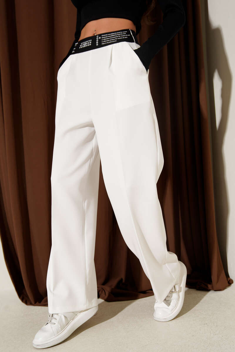 Baskılı Bel Lastikli Palazzo Pantolon Ekru