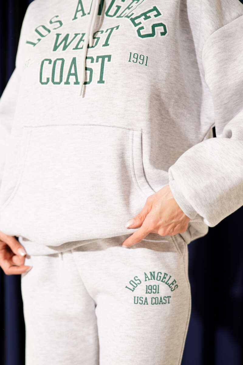 Baskılı Kapüşonlu Üç İplik Sweat İkili Takım Siyah