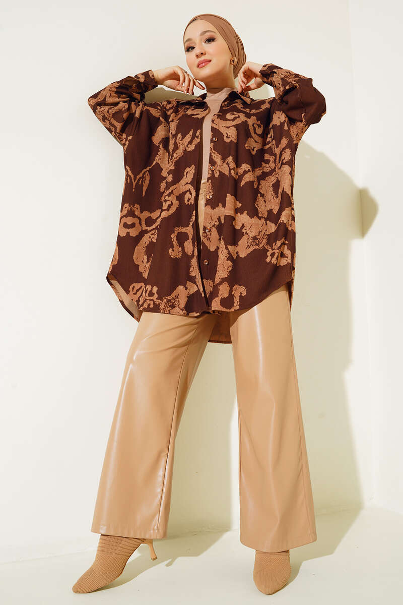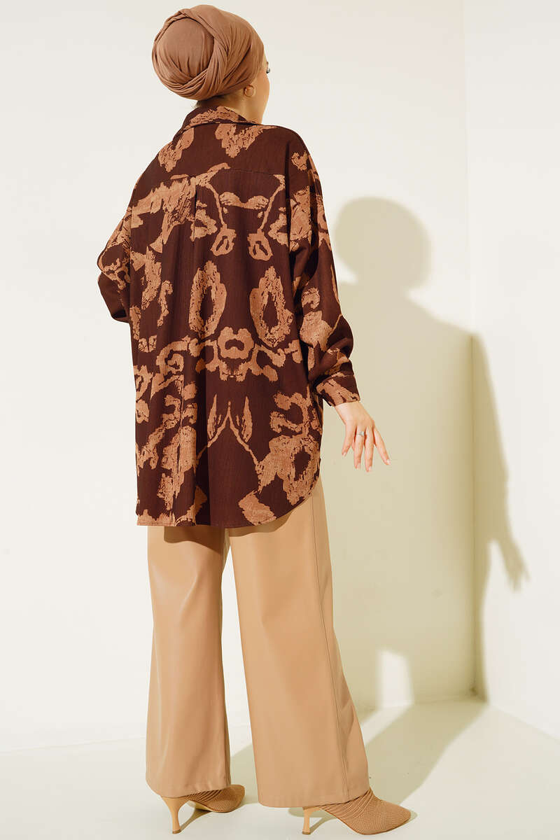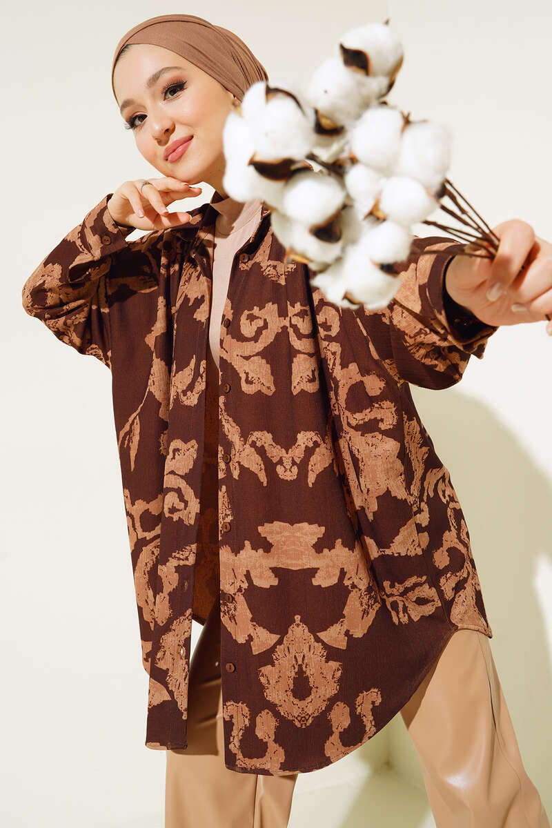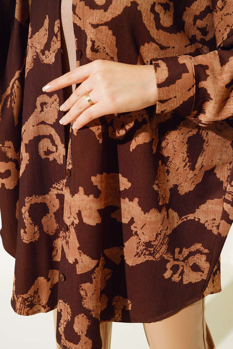 Yeni sezon gömleğimiz soyut desenleriyle oldukça şık yapısıyla rahat bir kullanım sunmaktadır. Boydan düğmeli olan gömleğimiz düşük omuzludur. Etek ucu oval kesimdir. Renk seçenekleri bulunmaktadır.