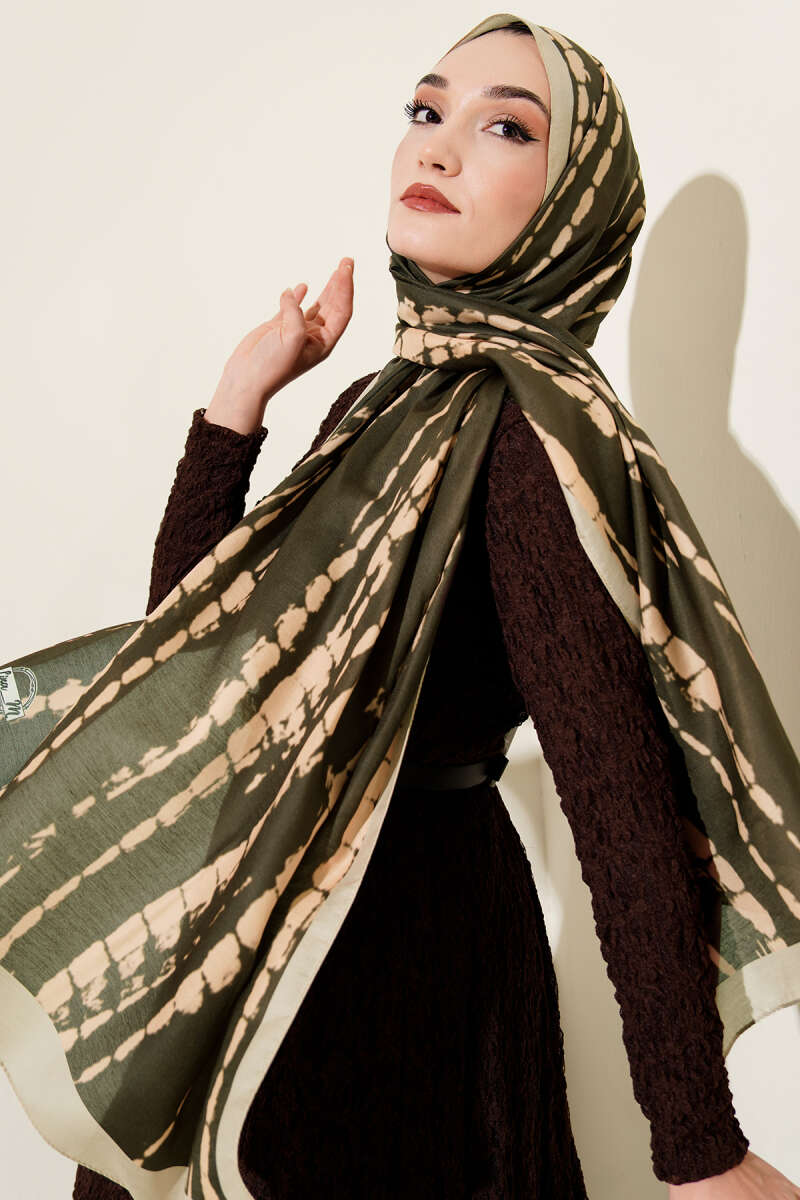 Batik Akış Çizgili Soft Şal Haki