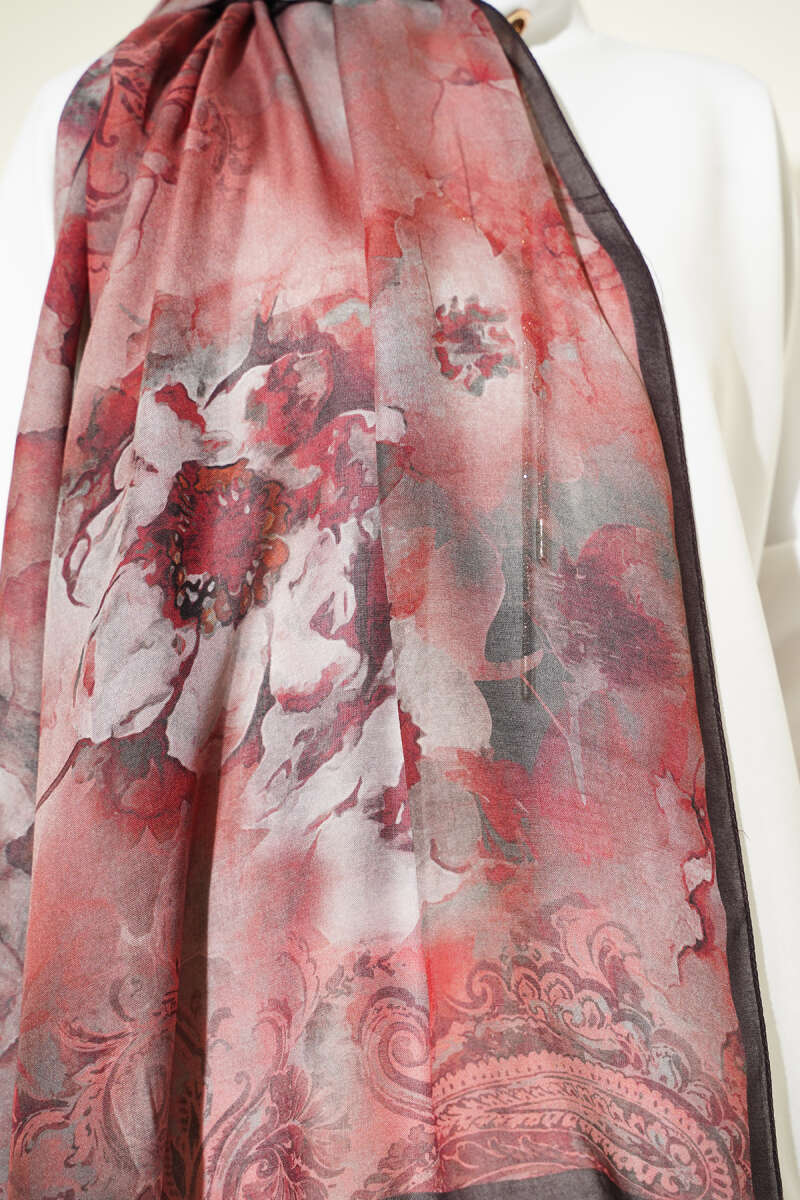 Batik Çiçek Desen Rami Şal Kahve