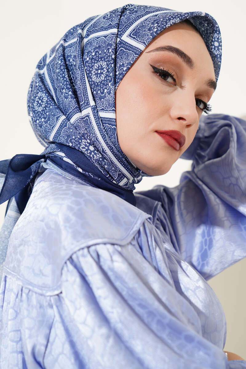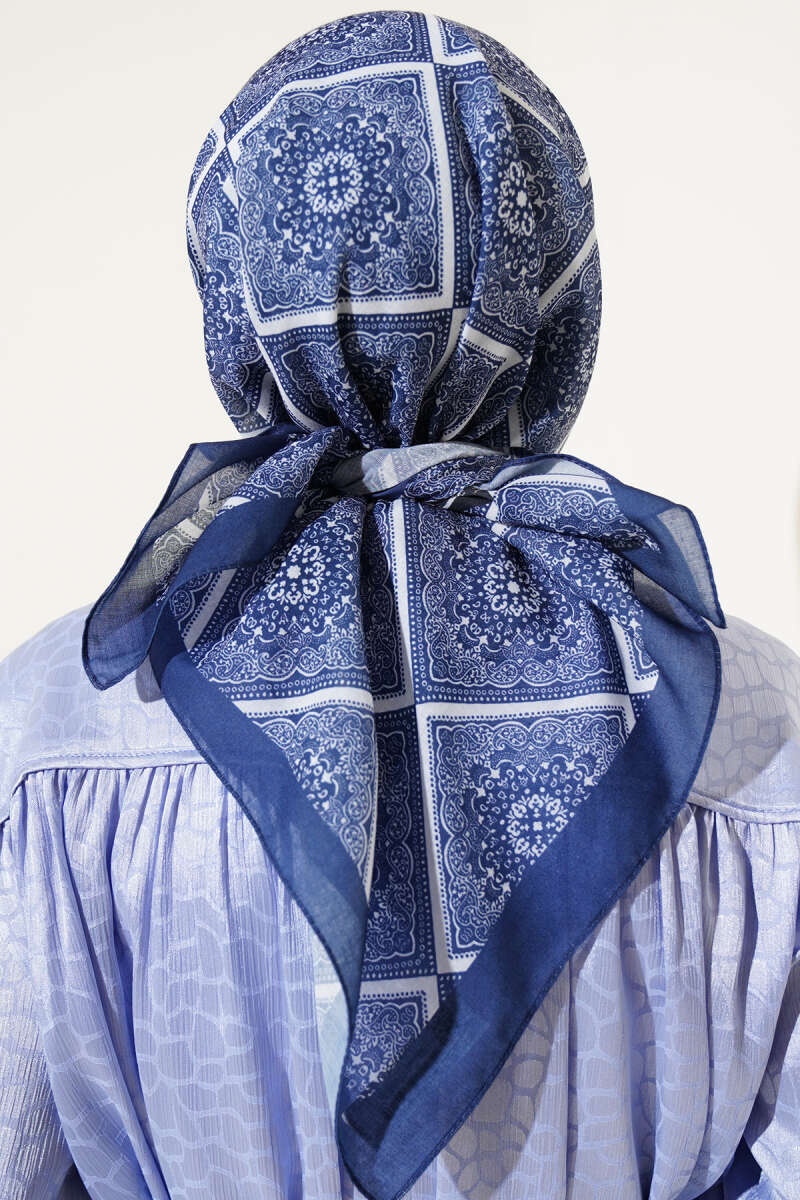 Batik Çini Desen Soft Eşarp Lacivert