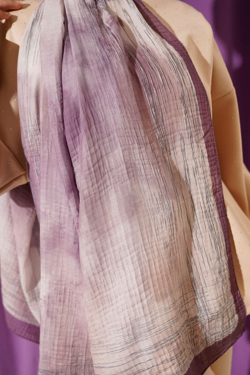Ebruli Çiçekli Bambu Kraş Eşarp Bordo