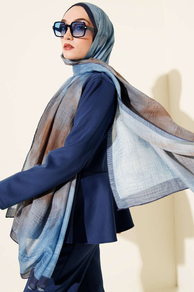 Batik Desen Müslin Şal Lacivert