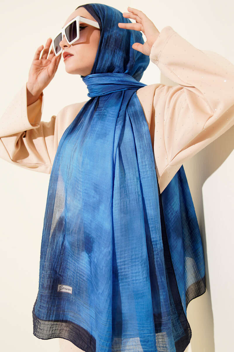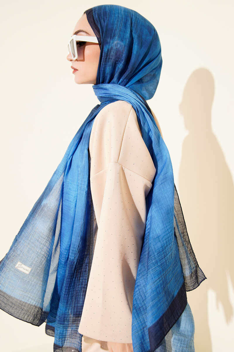 Batik Desen Müslin Şal Saks