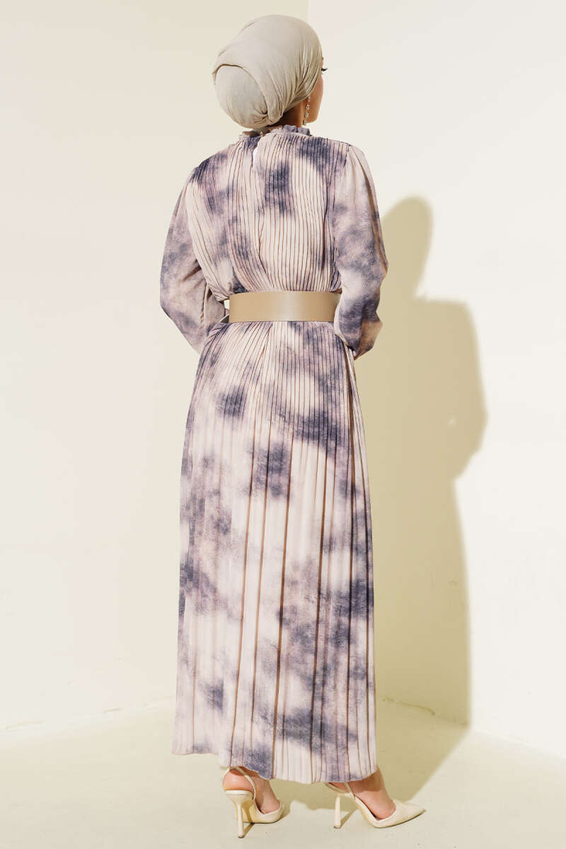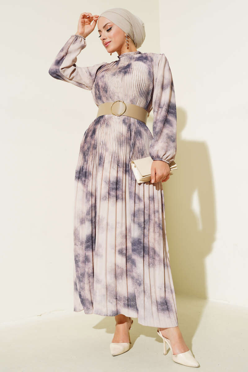 Scuba Pens Detaylı Kemerli Elbise Vizon