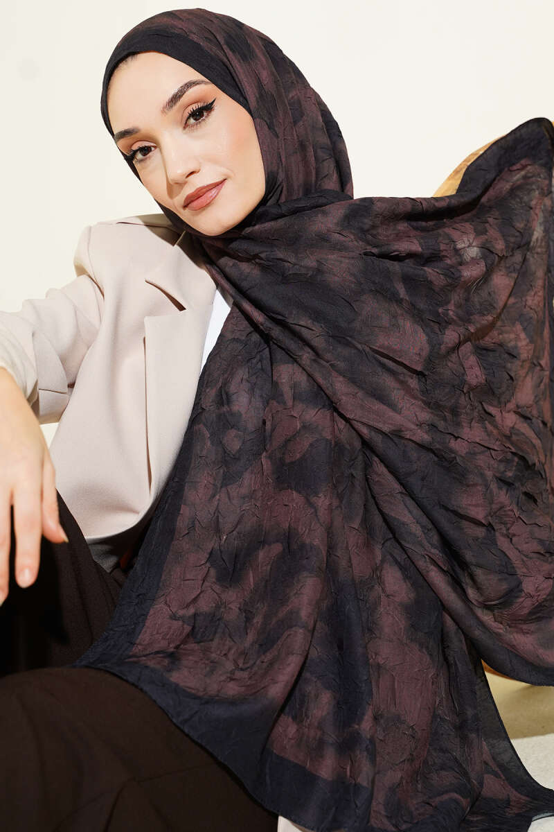 Batik Motifli Modal Şal Kahve