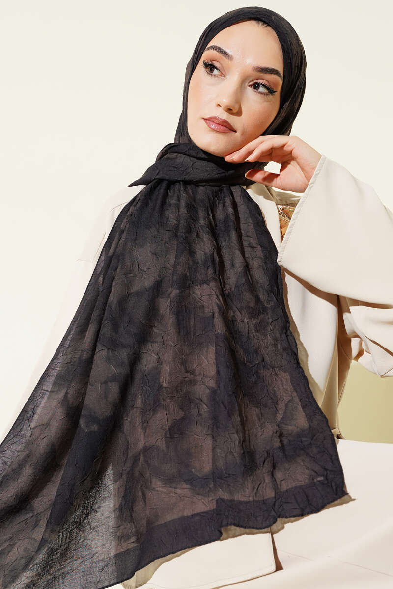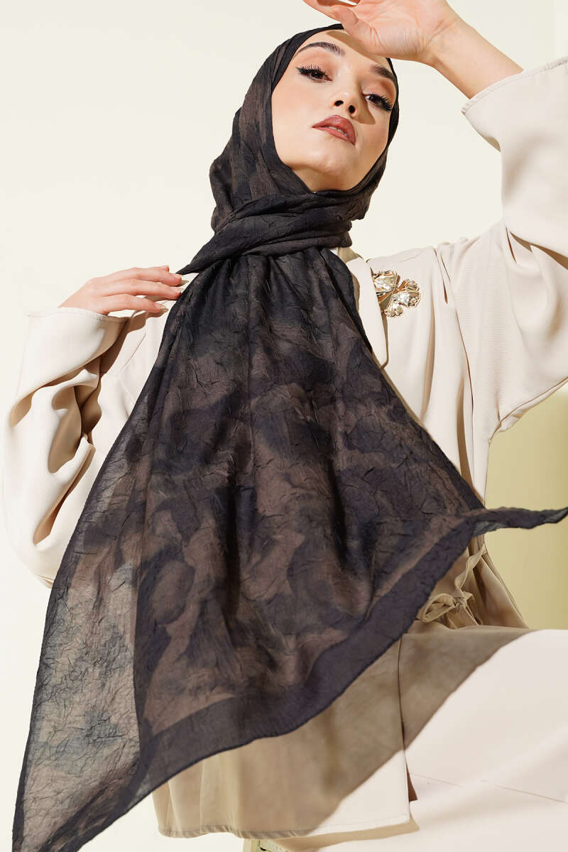 Batik Desenli Bambu Kraş Şal Acı Kahve