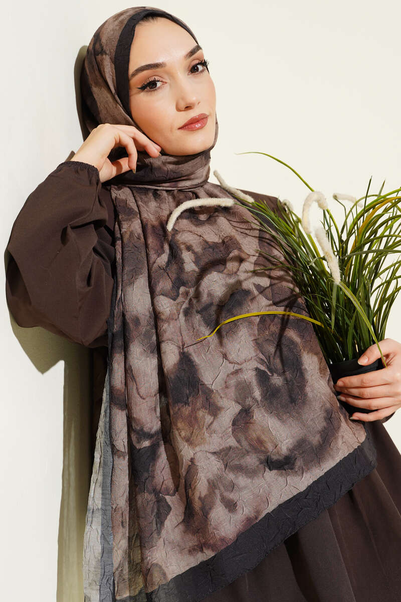 Batik Motifli Modal Şal Kahve