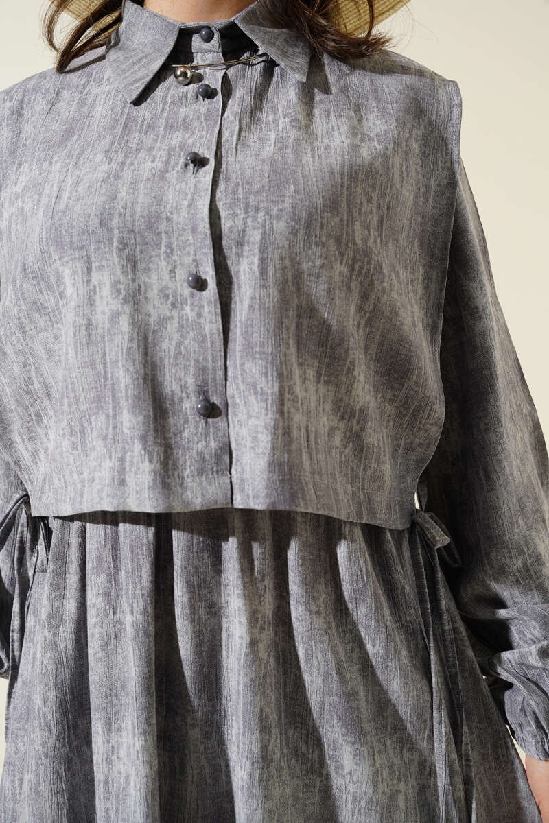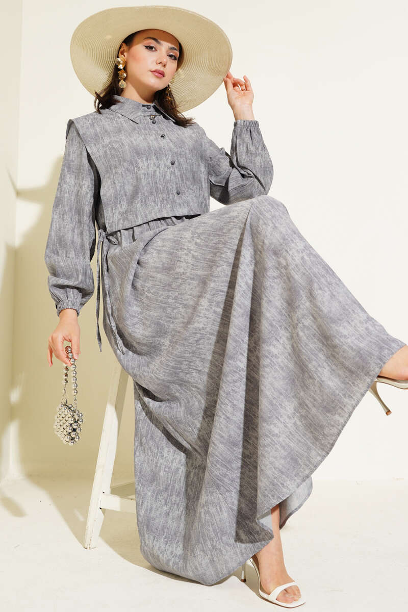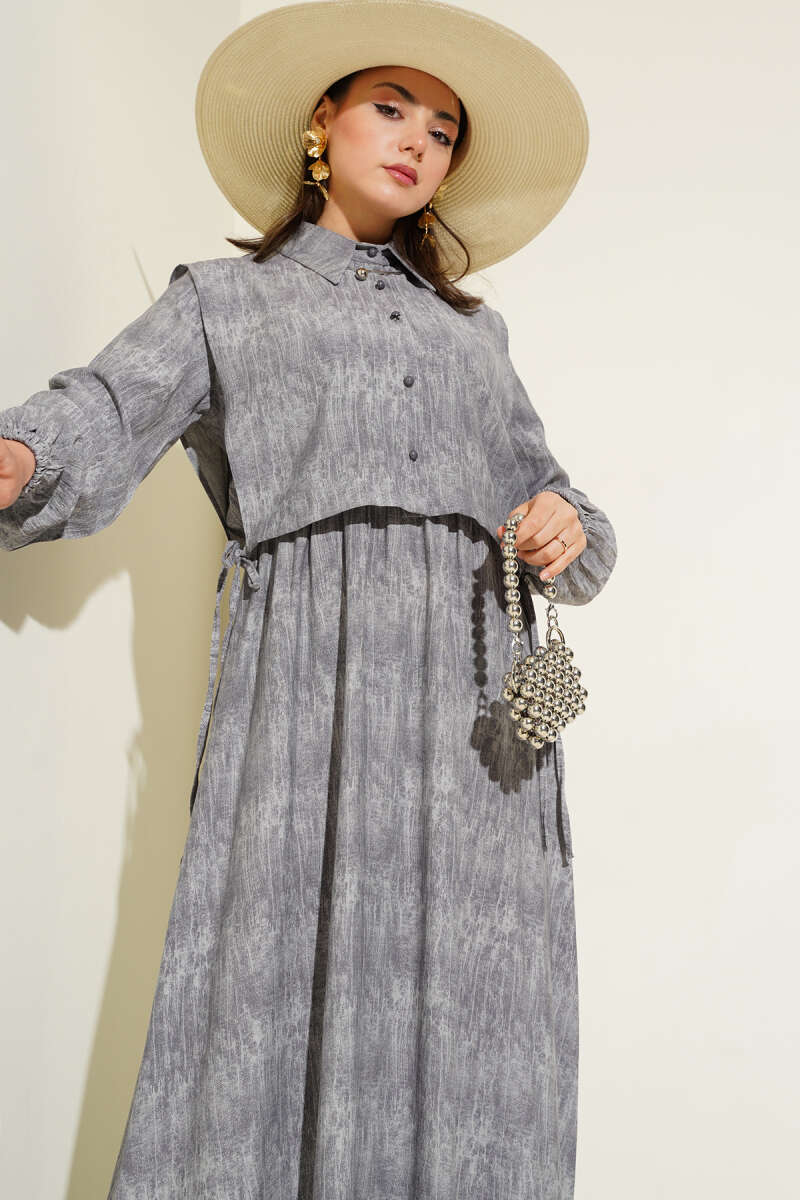 Gömlek Yaka Düğmeli Triko Elbise Taş