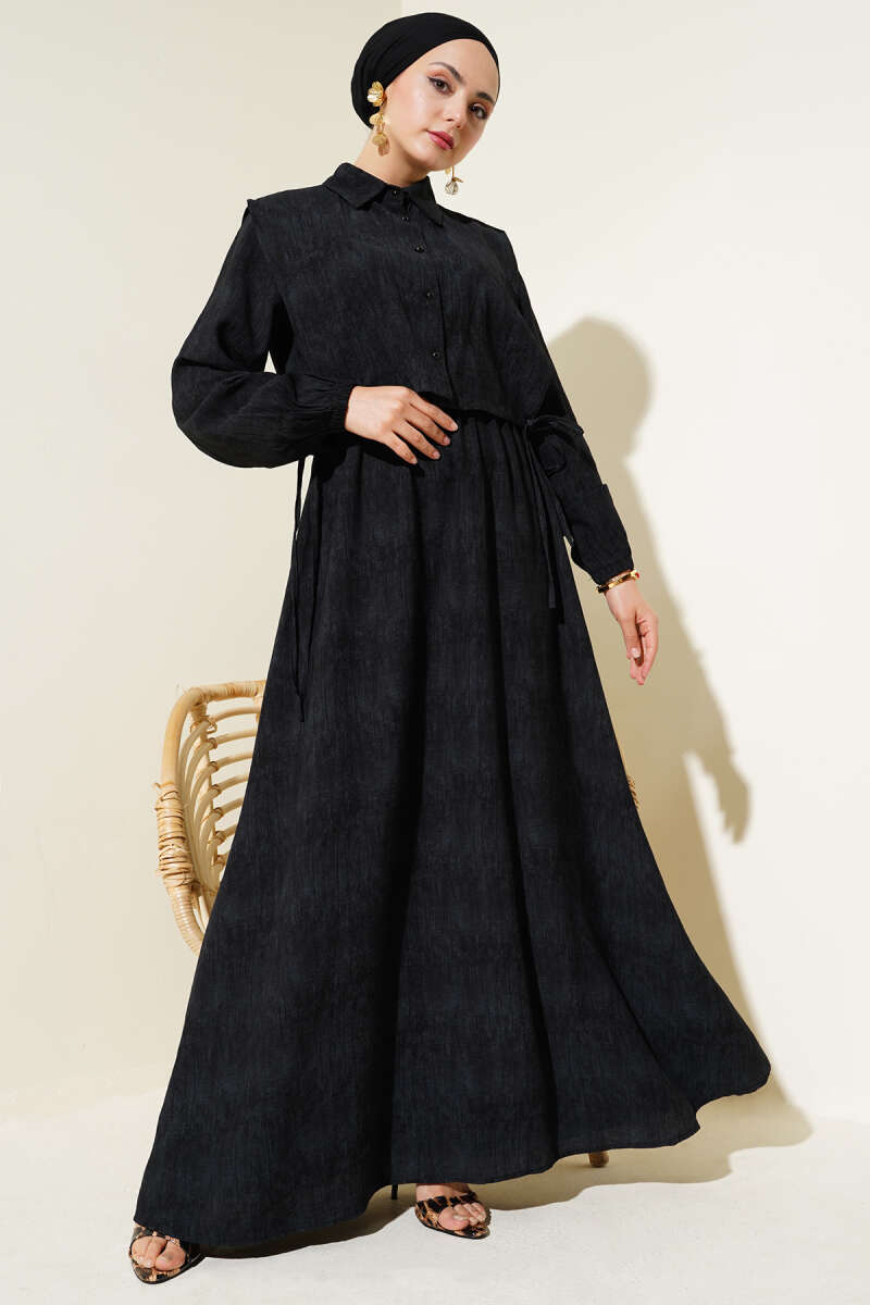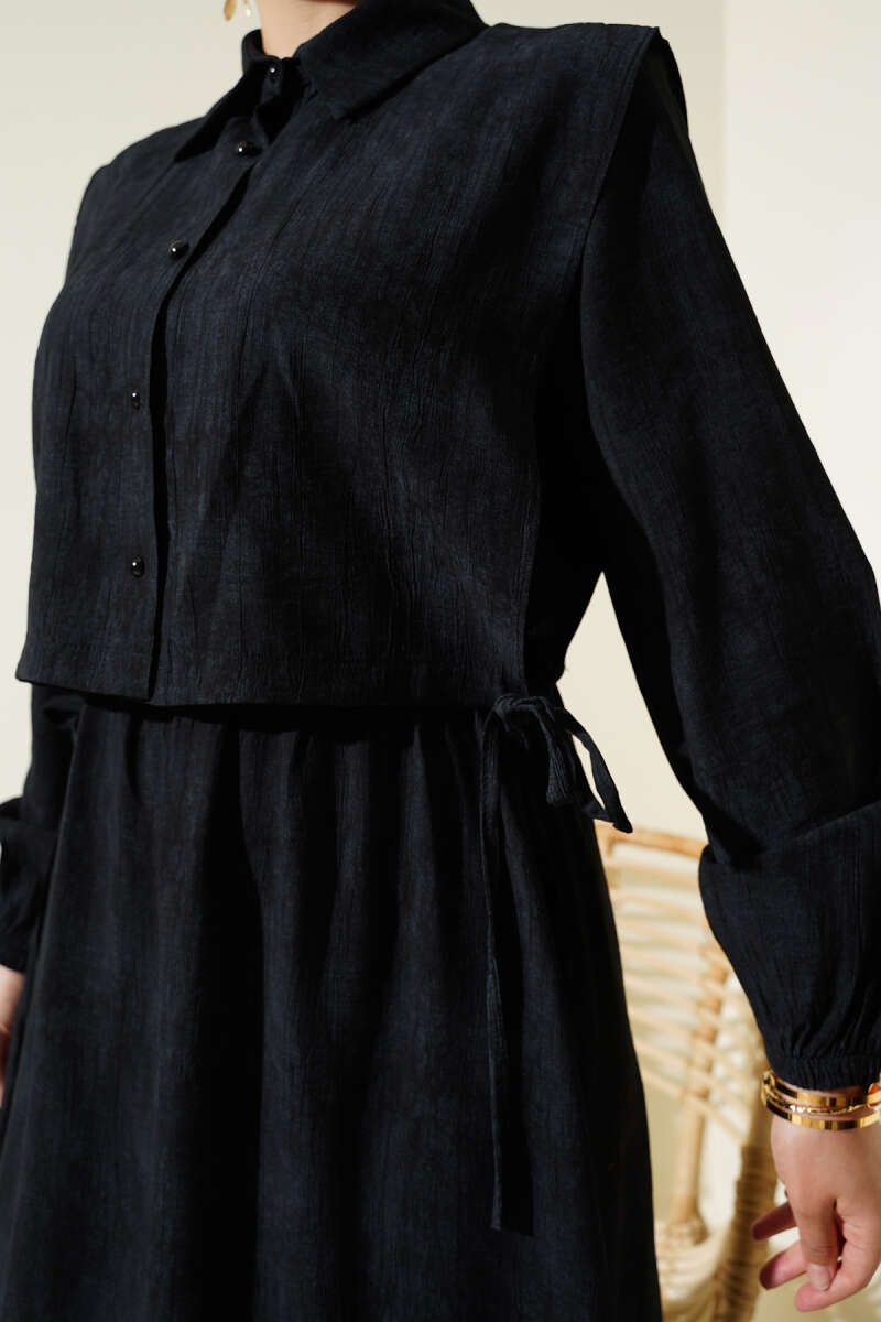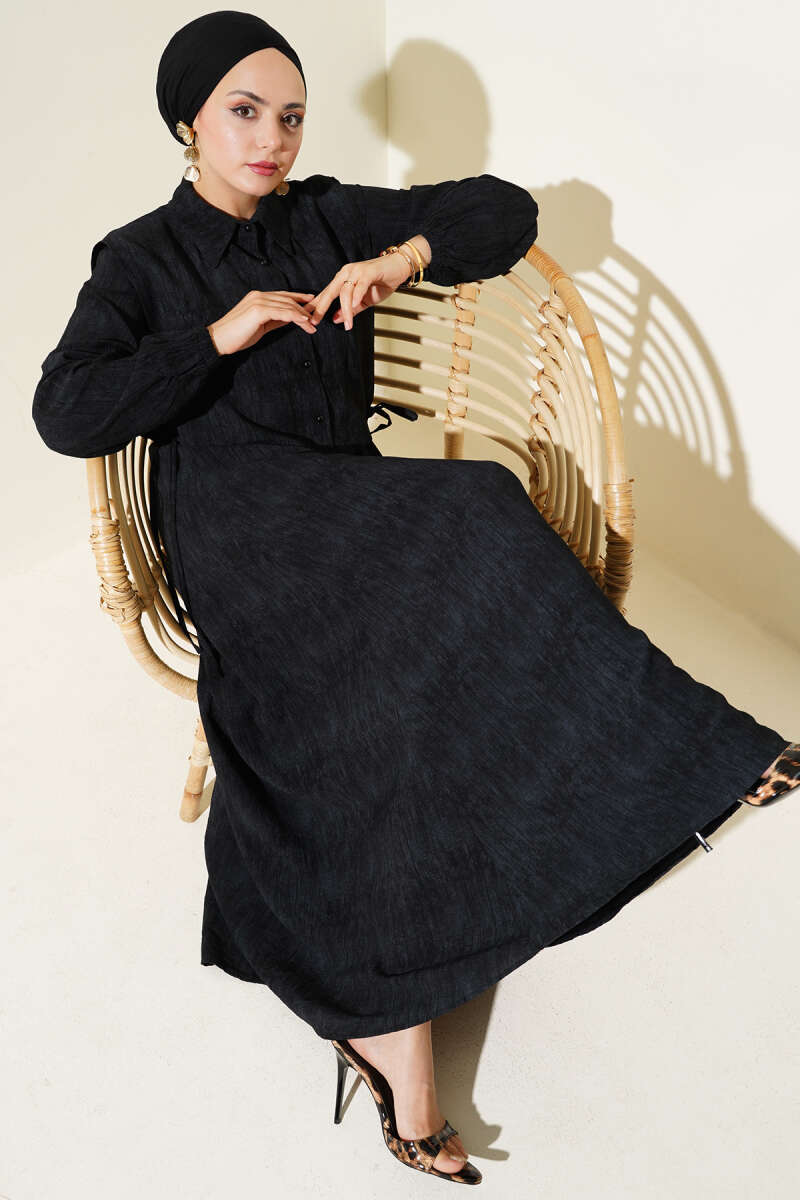 Gömlek Yaka Düğmeli Triko Elbise Siyah