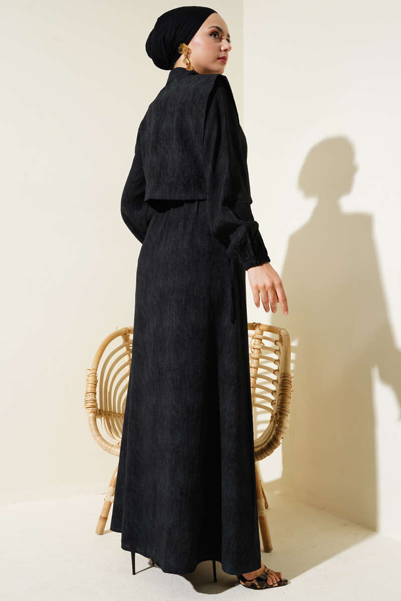Nakışlı Bel Lastikli Kat Kat Elbise Siyah