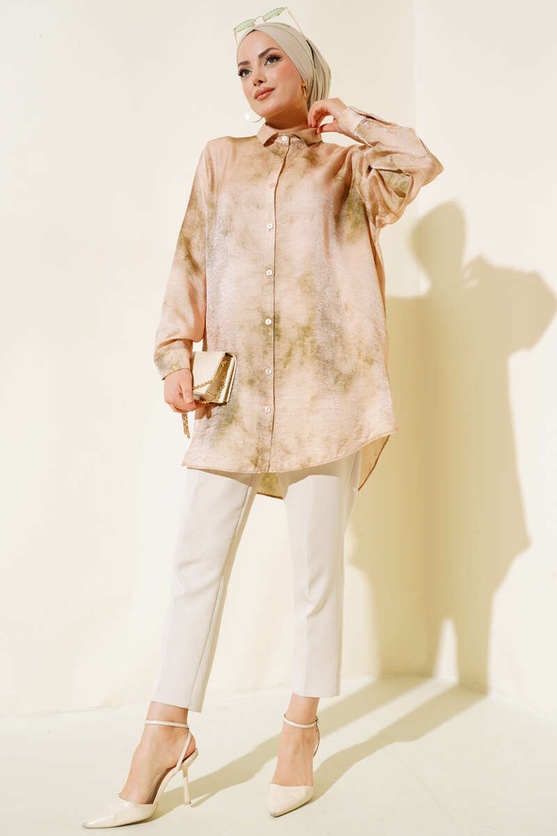 Yeni sezon tunik modelimiz saten kumaştır. Batik desenli tunik modelimiz hareketlilik ve şıklık kazanmıştır. Önü kısa arkası uzundur. Salaş model tuniğimizin önü boydan düğmelidir. Kol bilekleri de düğmeli olan tunik modelimizin renk seçenekleri mevcuttur.