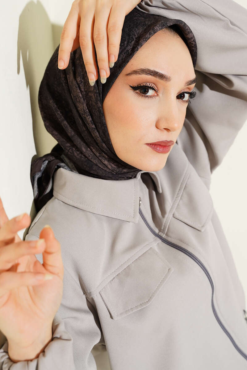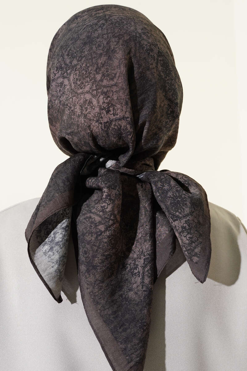 Minik Çiçek Motifli Soft Şal Siyah Vizon