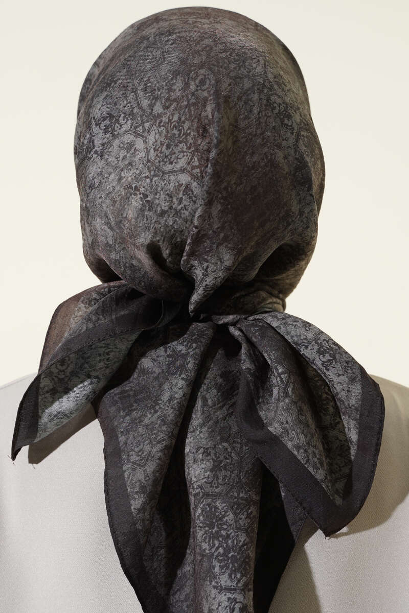 Minik Çiçek Motifli Soft Şal Siyah Vizon