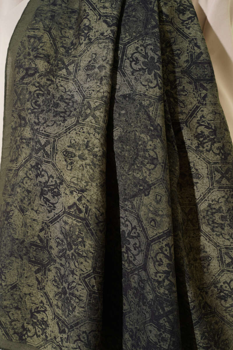 Batik Motifli Modal Şal Yeşil