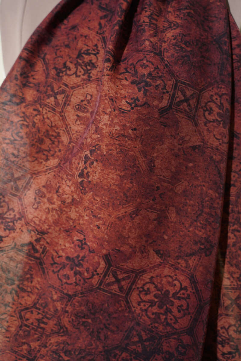 Batik Motifli Modal Şal Bordo