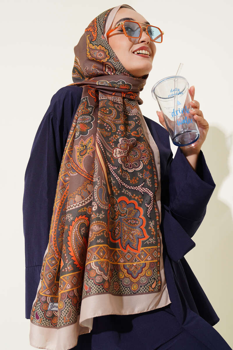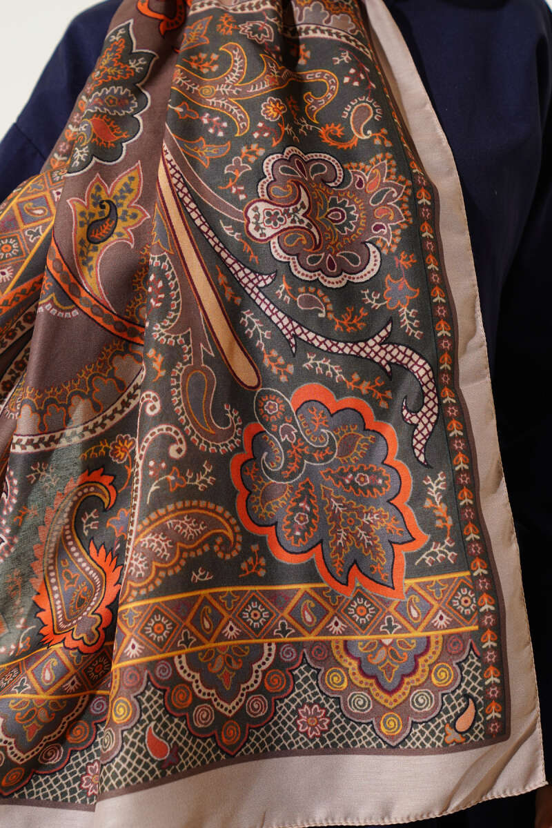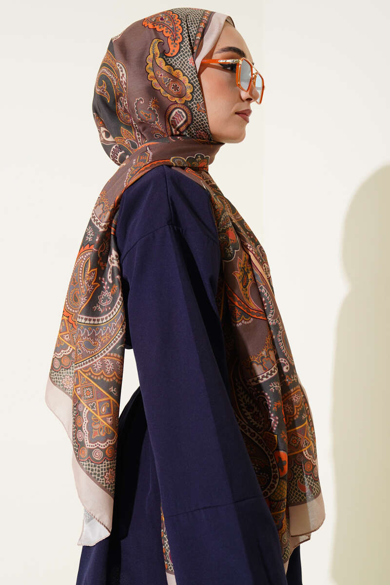 Otantik Desenli Çiçekli Şal Acı Kahve