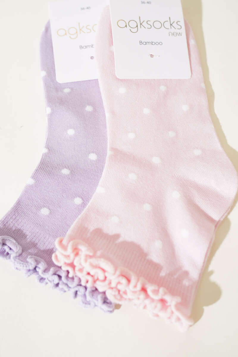 Bayan 3'lü Puantiyeli Kısa Konç Çorap Asorti 1